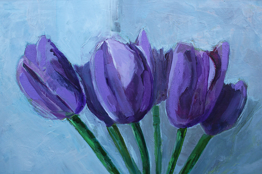 '6 Tulips For Murtle' is a signed, original Acrylic painting by Robin McRoberts.