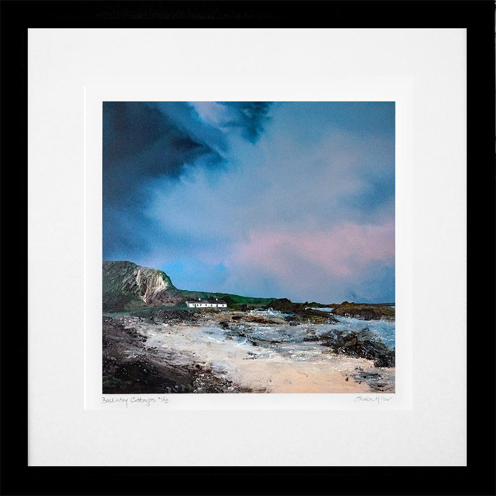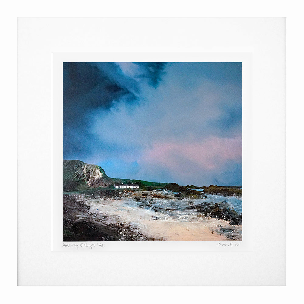 'Ballintoy Cottages' is a signed, limited edition Giclee print by Sharon Millar.