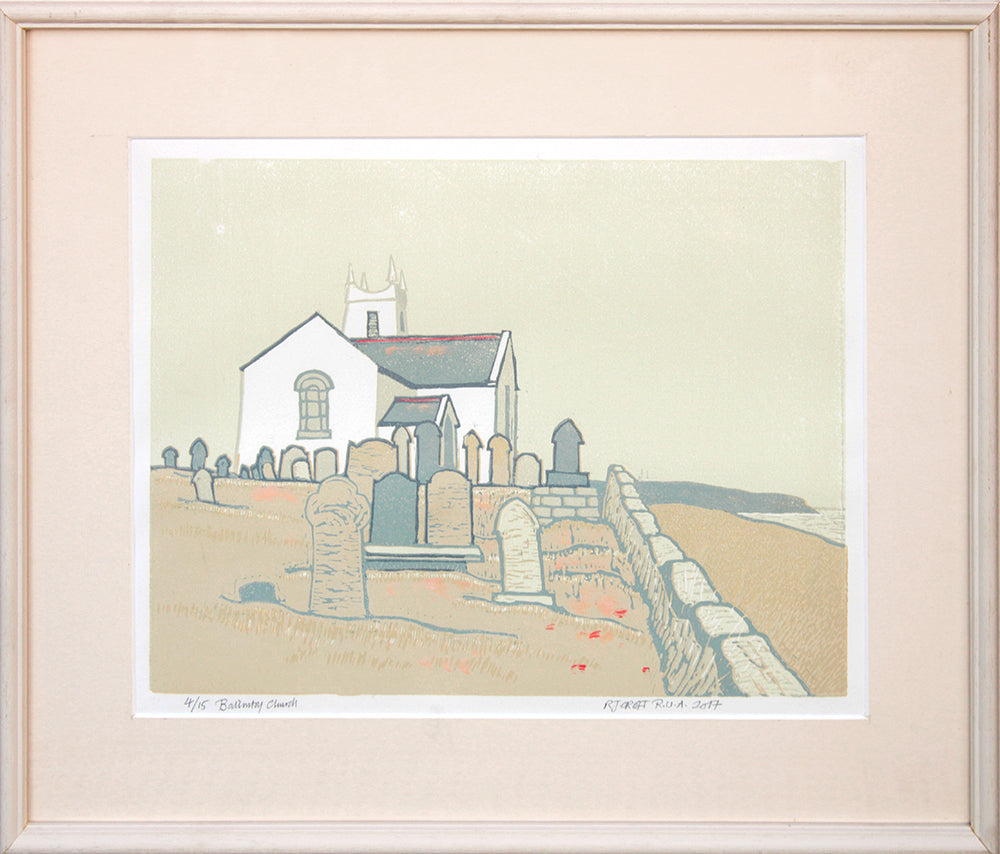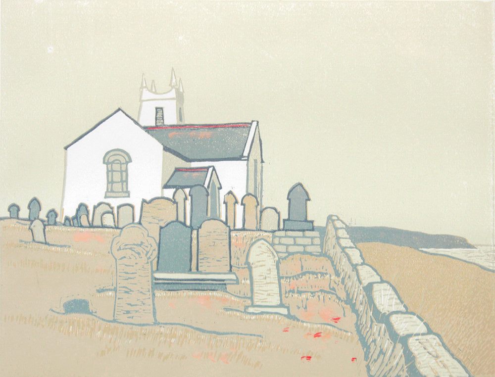 'Linocut Print - Co Antrim Ballintoy Church 2017' is a signed, original linocut by Richard Croft.