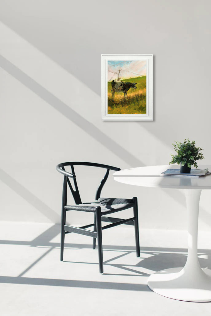 'Ballyvester Cow' is a signed, original, oil on board painting by Ray Belletty which was painted on location 'en plein air' in an impressionistic style.