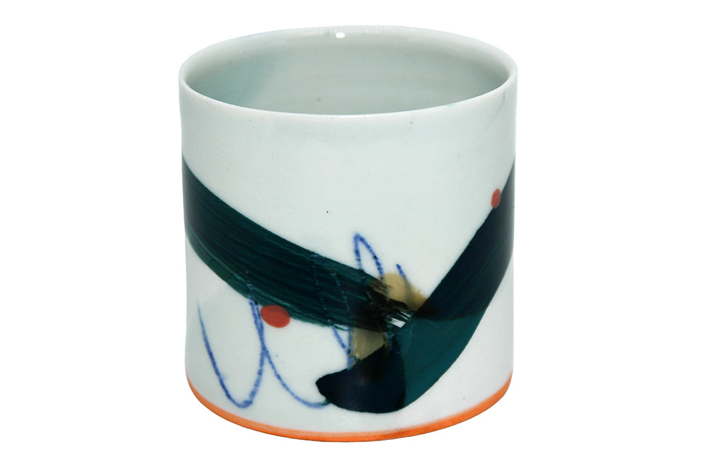 'Beaker Espresso 2' is a beautifully hand crafted ceramic beaker made from porcelain with a hand painted design. Adam Frew is a ceramicist from Northern Ireland who hand makes porcelain products using his spontaneity and personal expression.