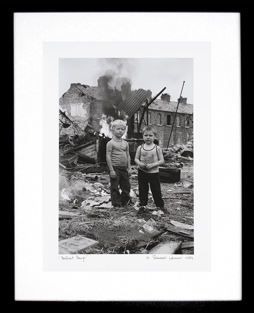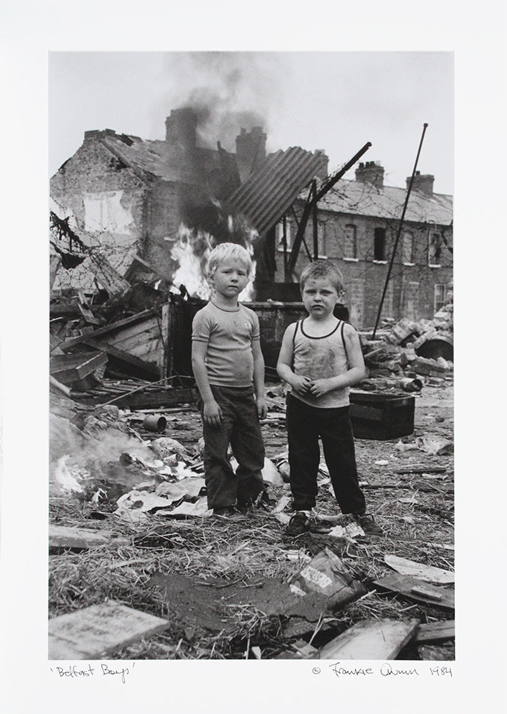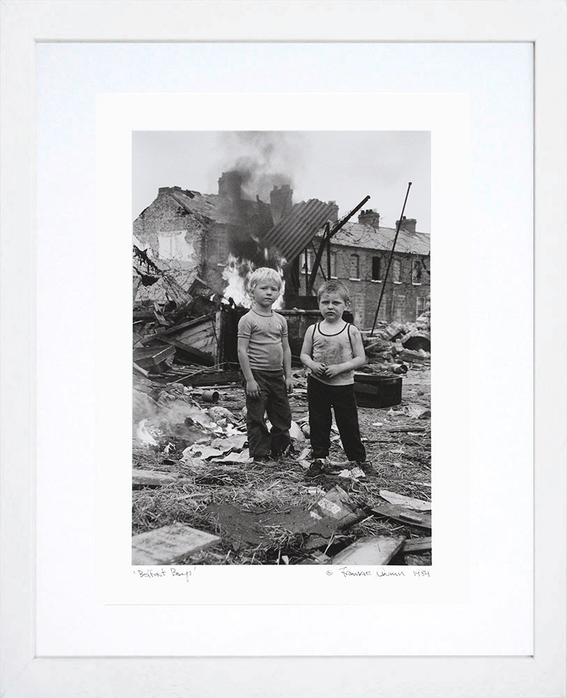 'Belfast Boys 1984' is a signed and titled photographic print by Frankie Quinn. This iconic print defined a generation of children growing up in inner city Belfast during 'The Troubles'.