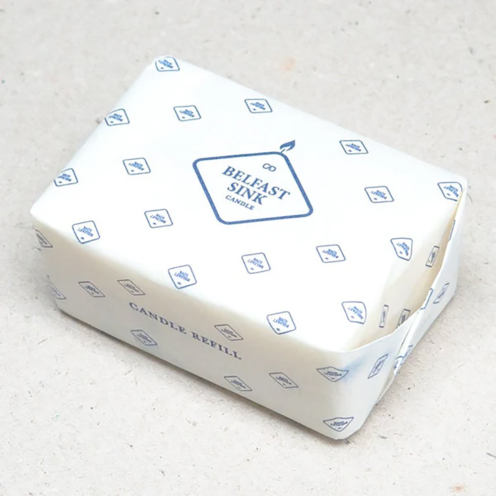 This product is a candle refill for Cowfield Design's Belfast Sink. This very unique soy based candle was hand poured in Belfast by a local chandelier. It has two specially picked wicks to ensure an even burn throughout.