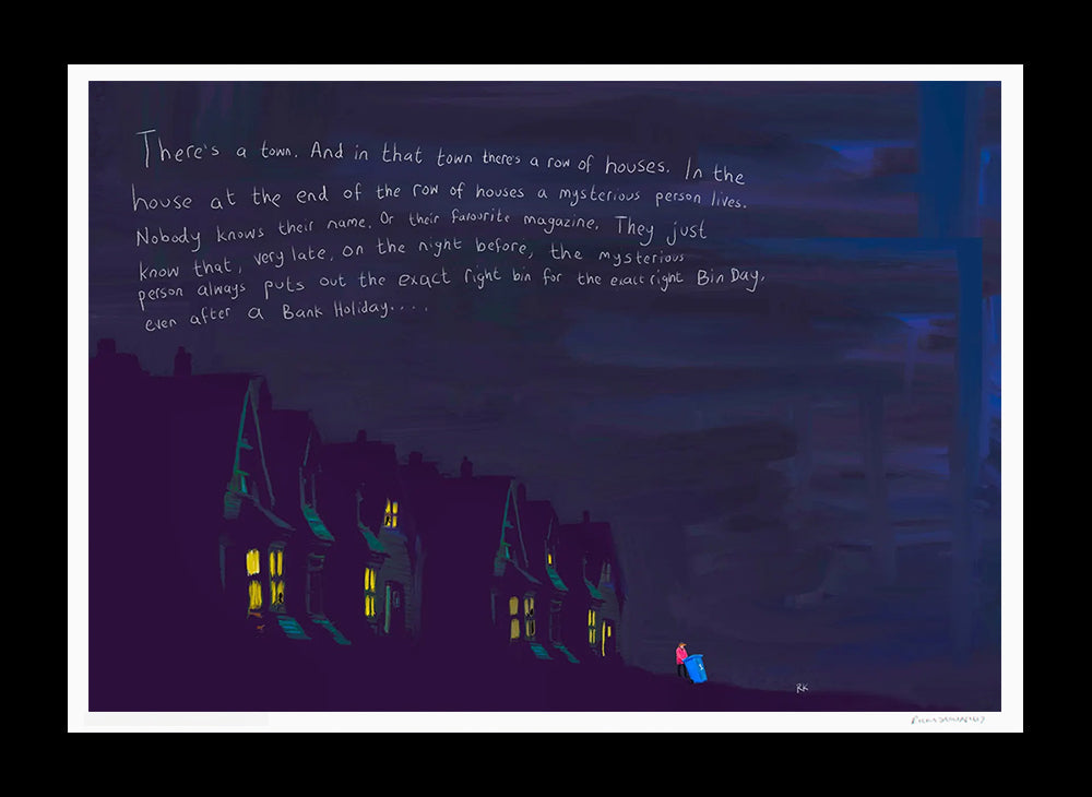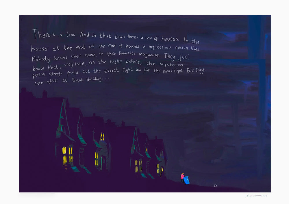 'Bin Day' is an illustrative poster print by RickyDrewAPiccy.