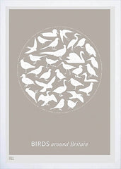'Birds Around Britain' in Stone is an open edition hand-pulled screen print by Bold and Noble.