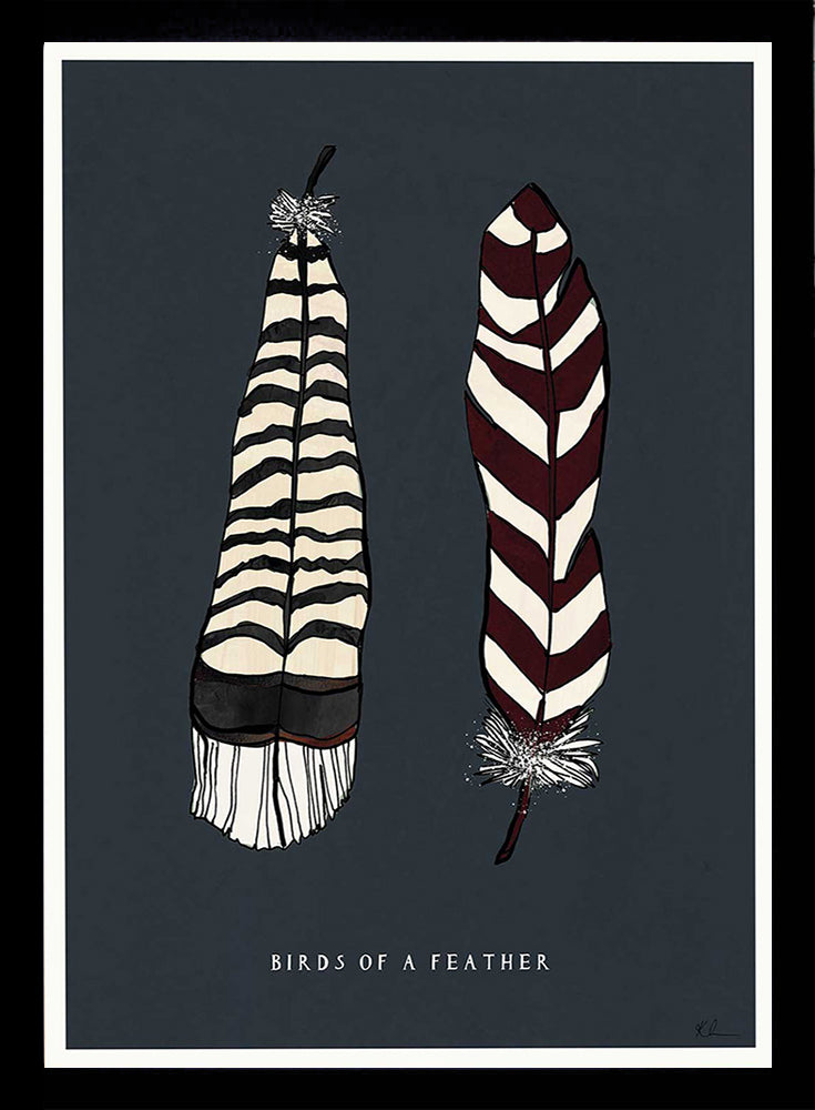 'Birds Of A Feather' is an open edition, illustrated Giclee print by Katie Cardew.