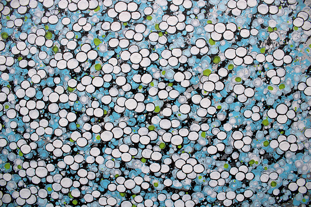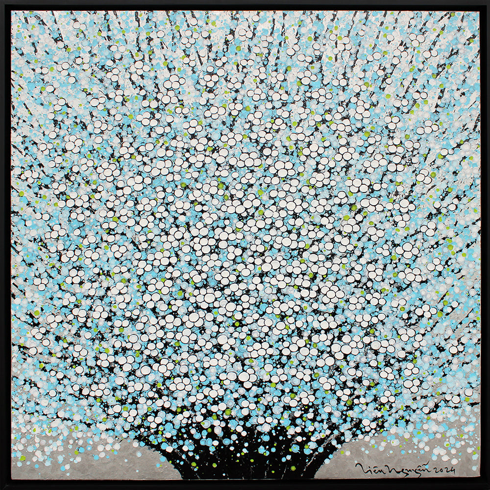'Blossoms In Blue 1' is a signed, original oil painting on canvas by Lieu Nguyen Huong Duong.