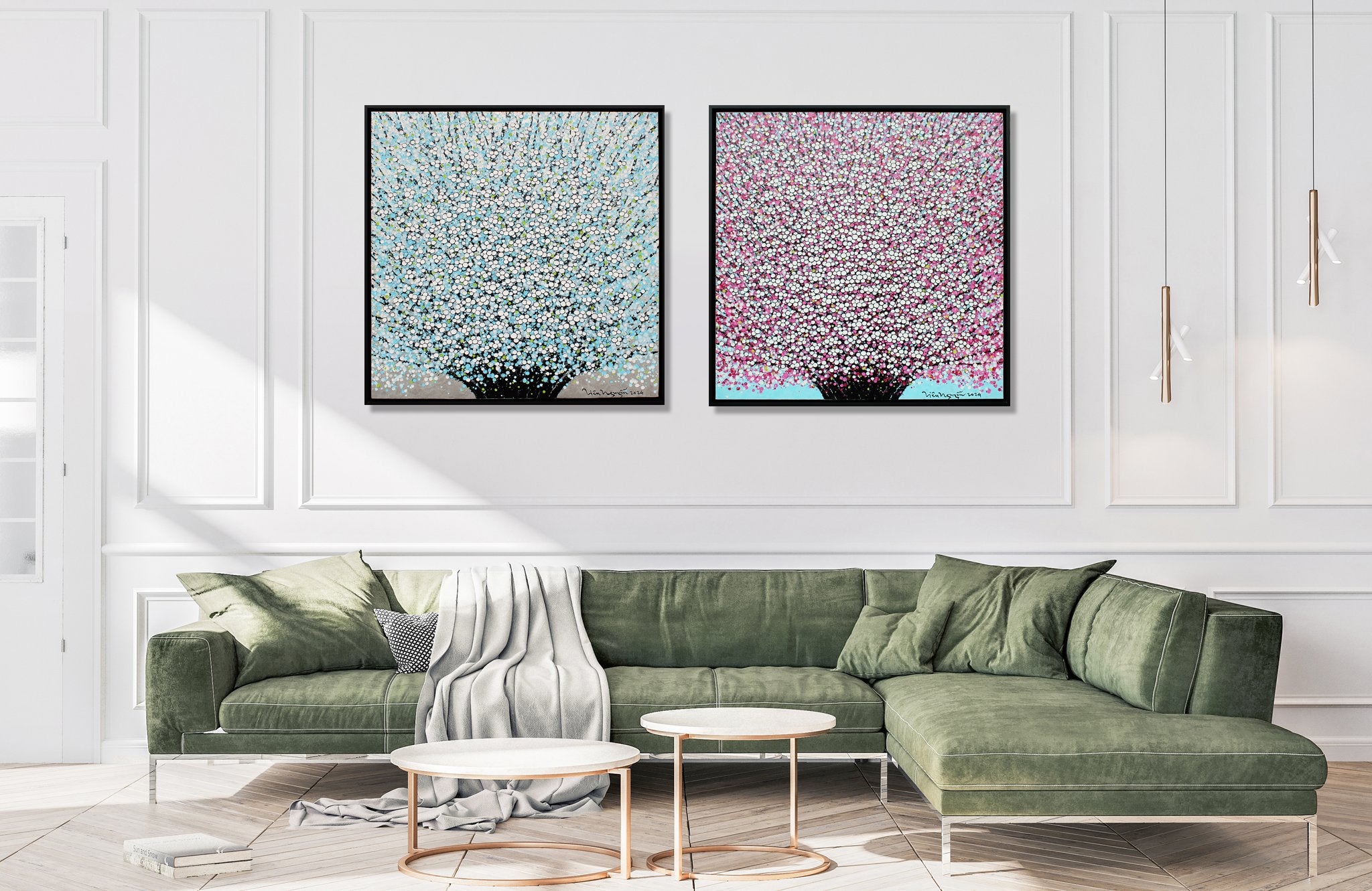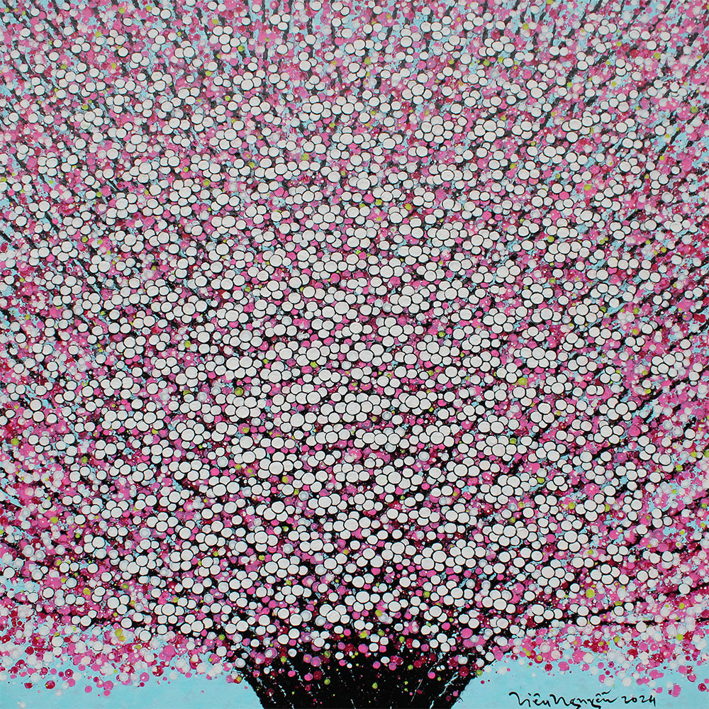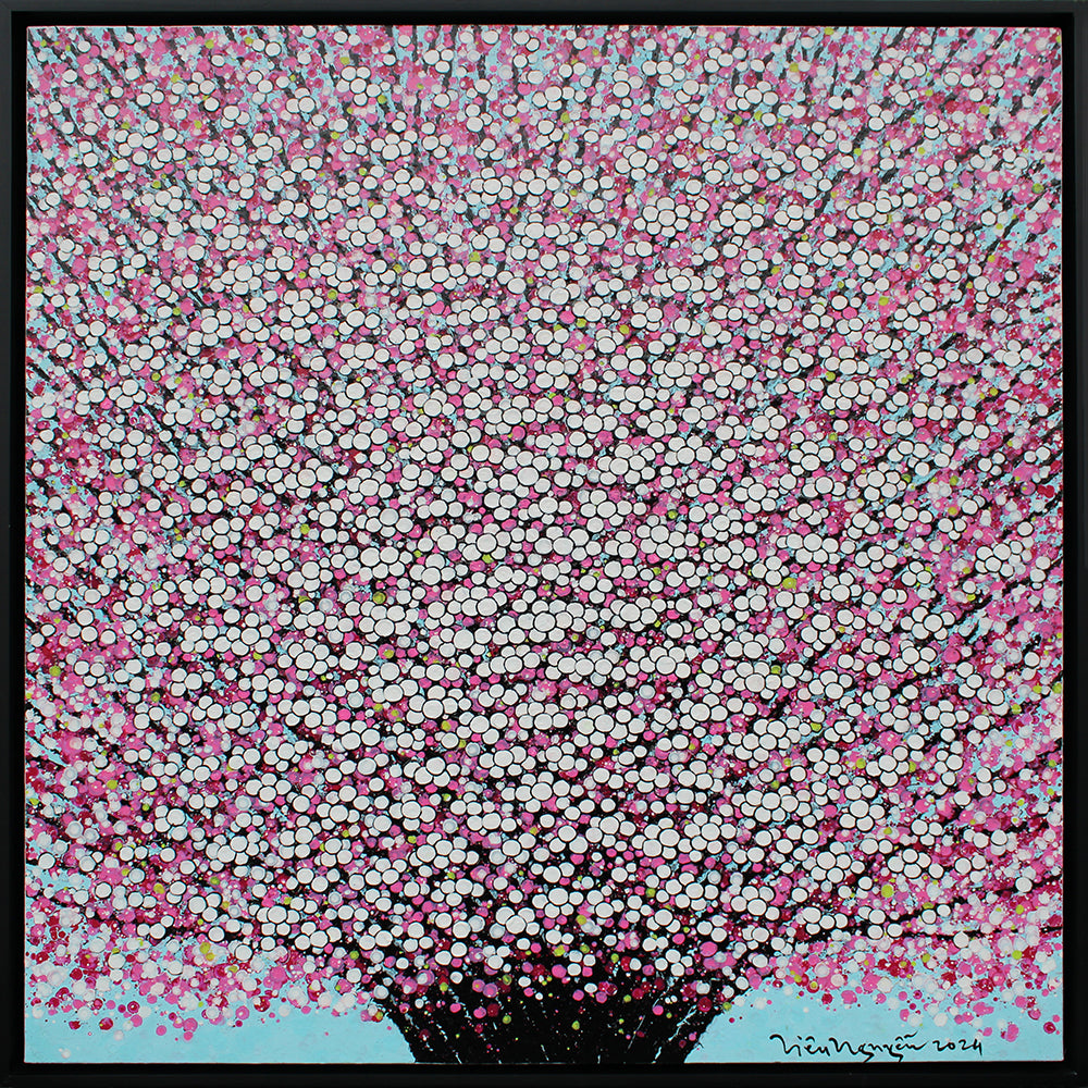 'Blossoms In Pink 1' is a signed, original oil painting on canvas by Lieu Nguyen Huong Duong.