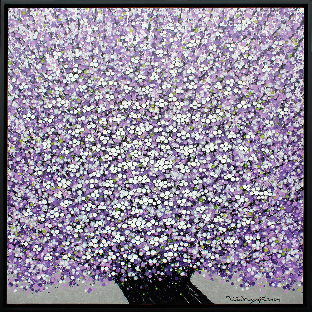'Blossoms In Purple' is a signed, original oil painting on canvas by Lieu Nguyen Huong Duong.