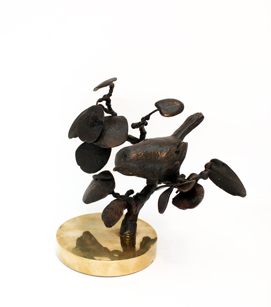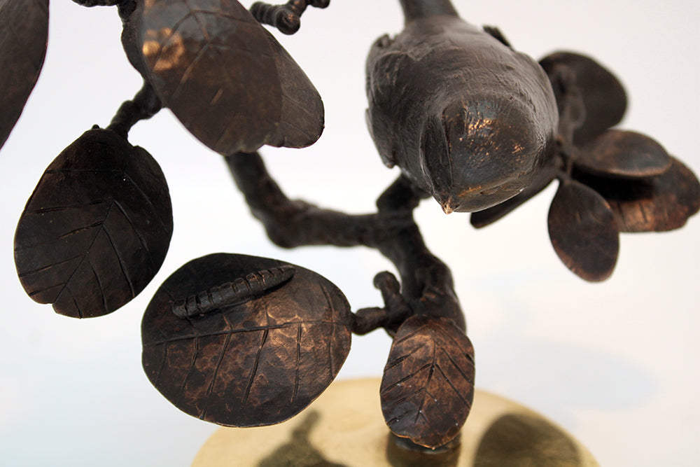 ‘Blue Tit and Caterpillar' by Ed Barton is an original handmade bronze piece with a composite base.