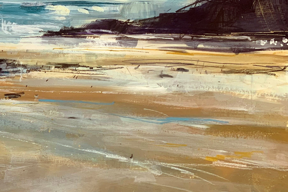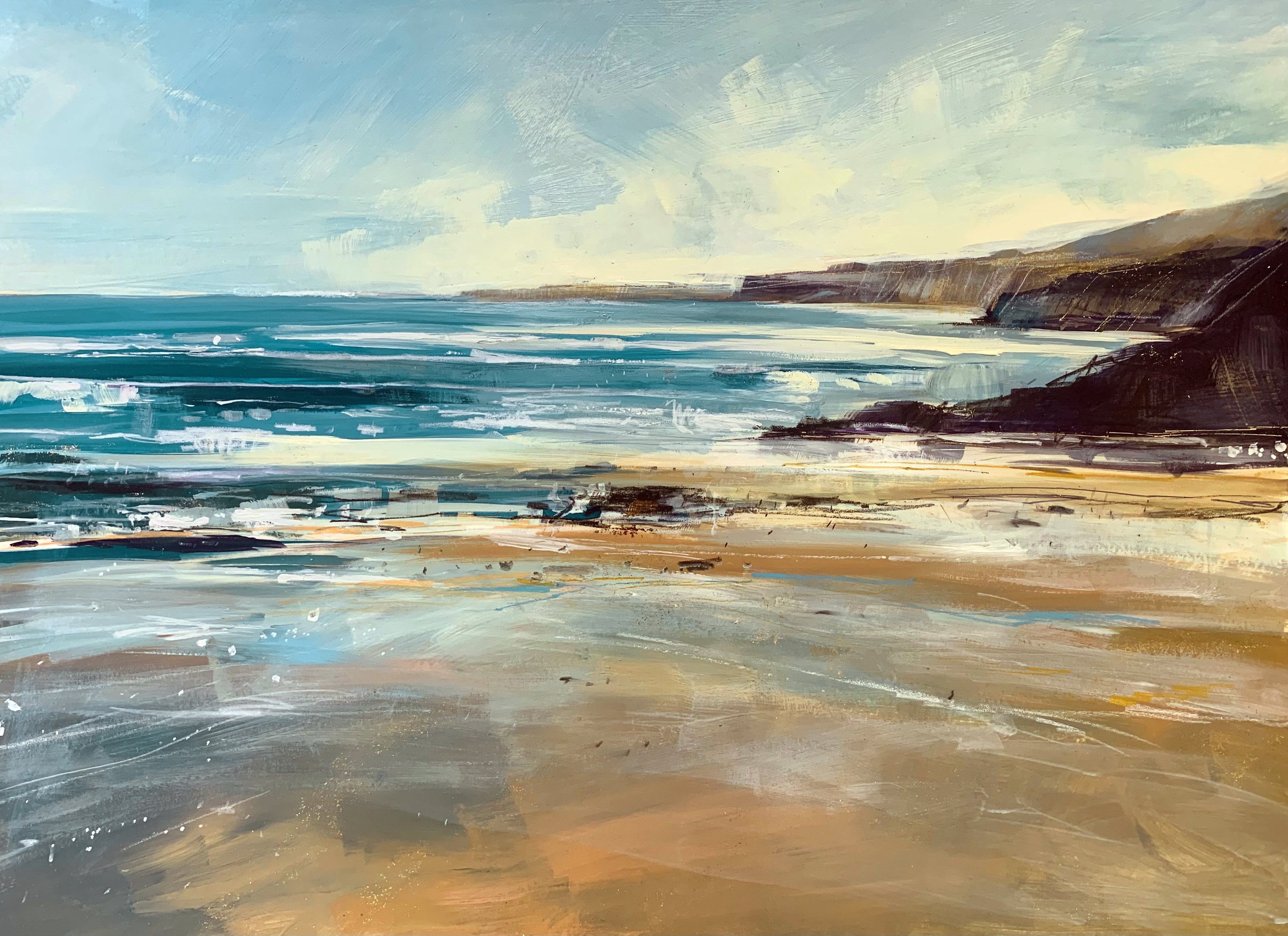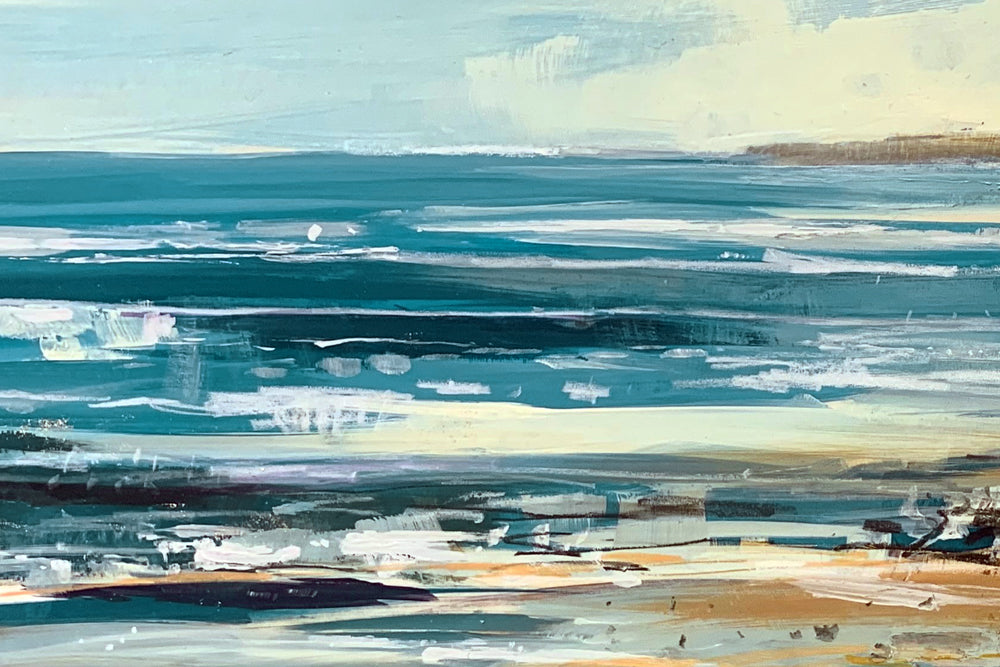 'Breakers Whiterocks' is a signed, original, mixed media painting with gold leaf details by Sarah Carrington.