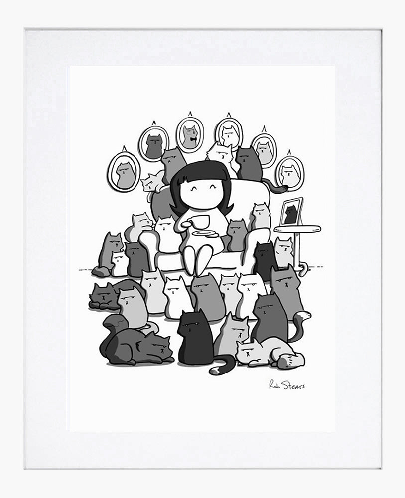 'Cat Lady' is a signed, illustrative open edition print by Rob Stears.