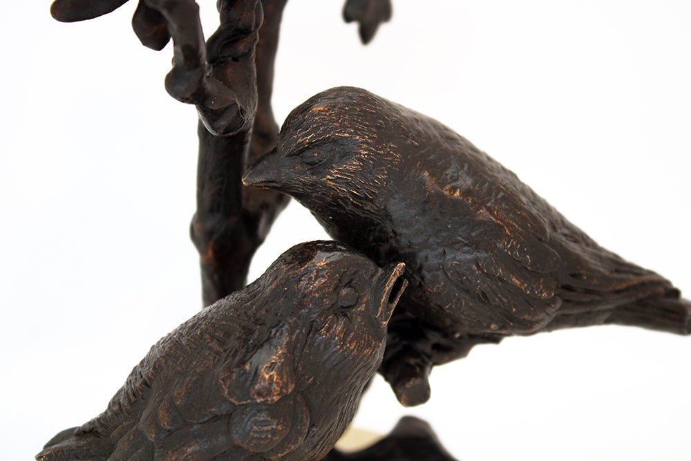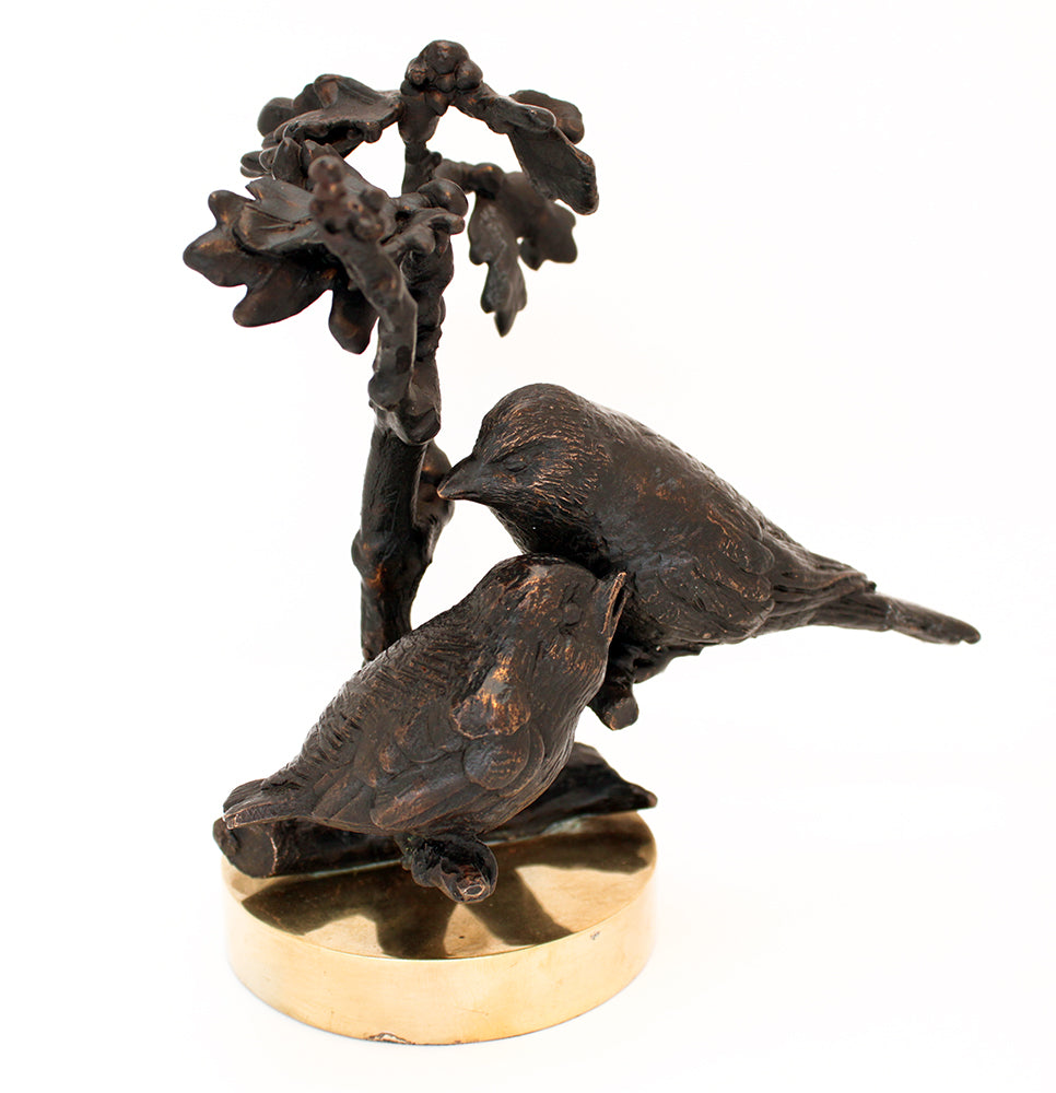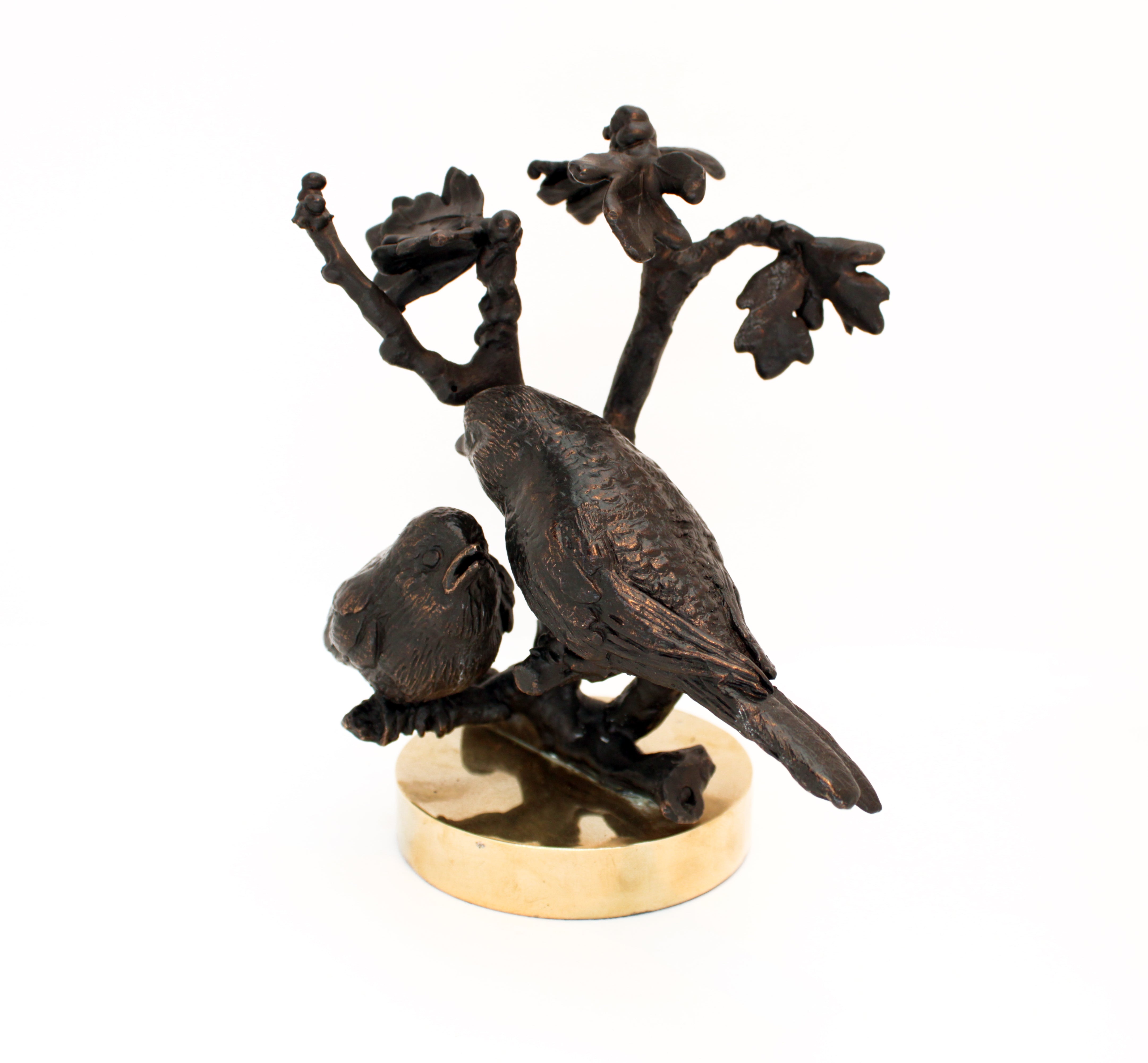 ‘Chaffinch and Young' by Ed Barton is an original handmade bronze piece with a composite base.