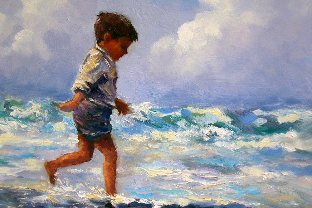 'Child In The Surf' is a signed, original oil painting by Hamilton Sloan.