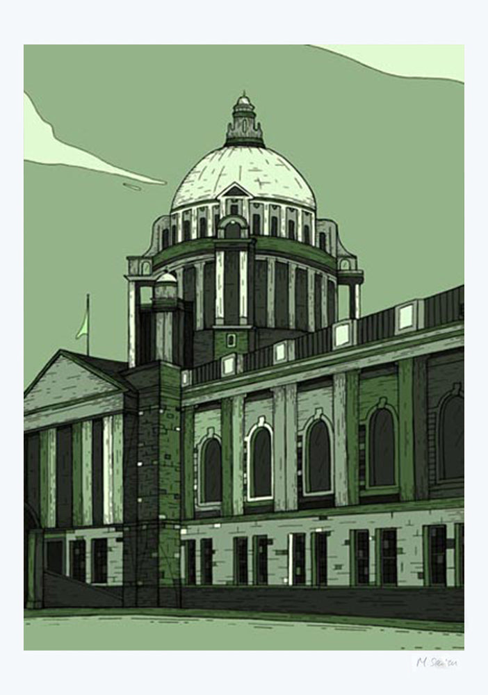 'City Hall Belfast' is a signed giclee print from an illustration by Mark Seaton.