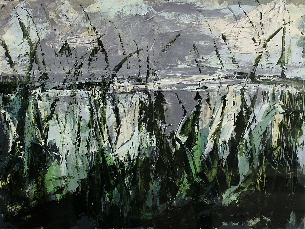 'Coastal Path In The Rain 2' is a signed, original, mixed media painting by Colin Campbell.