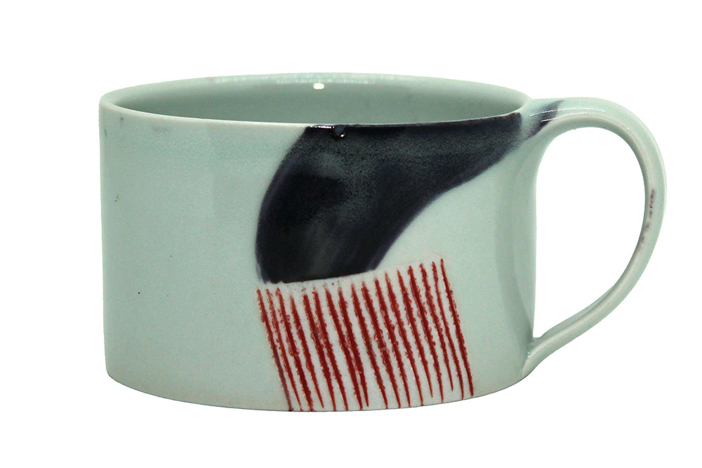 'Cup Flat White 4' is a beautifully hand crafted ceramic cup made from porcelain with a hand painted design. Adam Frew is a ceramicist from Northern Ireland who hand makes porcelain products using his spontaneity and personal expression.