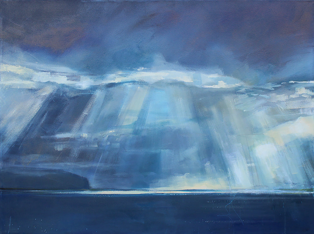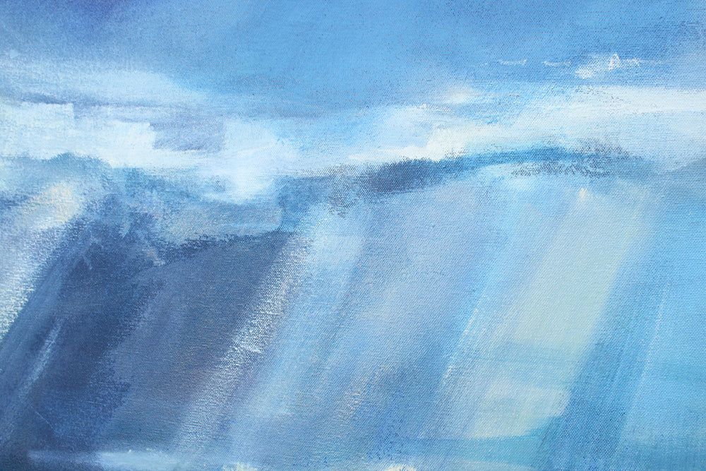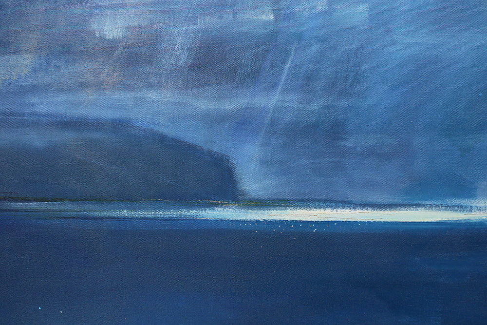 'Dark Clouds, Portstewart' is a signed, original, oil painting with gold leaf details on canvas by Sarah Carrington.