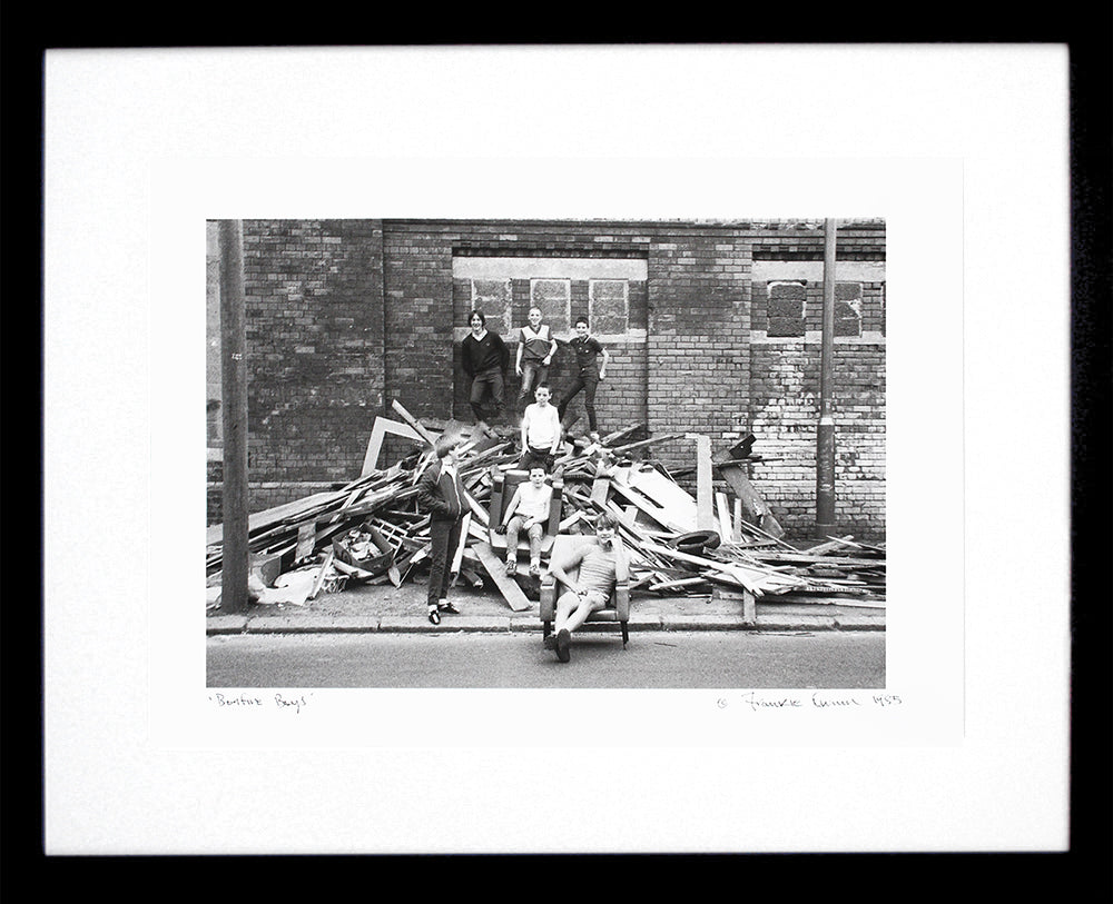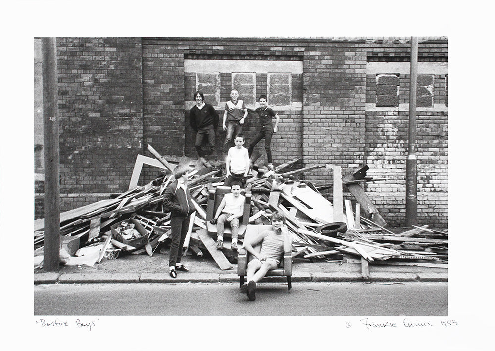 'Bonfire Boys' is a signed and titled photographic print by Frankie Quinn. This iconic print defined a generation of children growing up in inner city Belfast during 'The Troubles'.