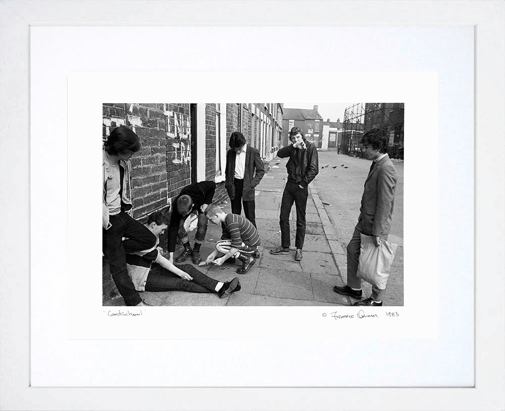 'Card School' is a signed and titled photographic print by Frankie Quinn. This iconic print defined a generation of children growing up in inner city Belfast during 'The Troubles'.