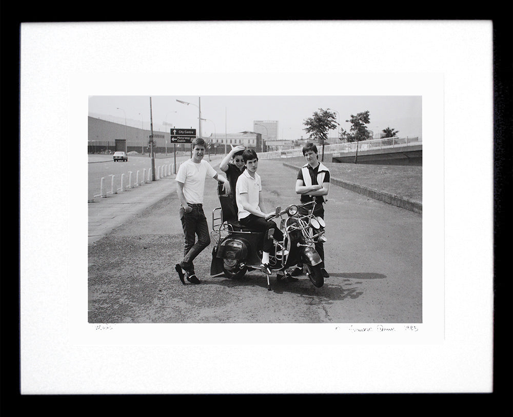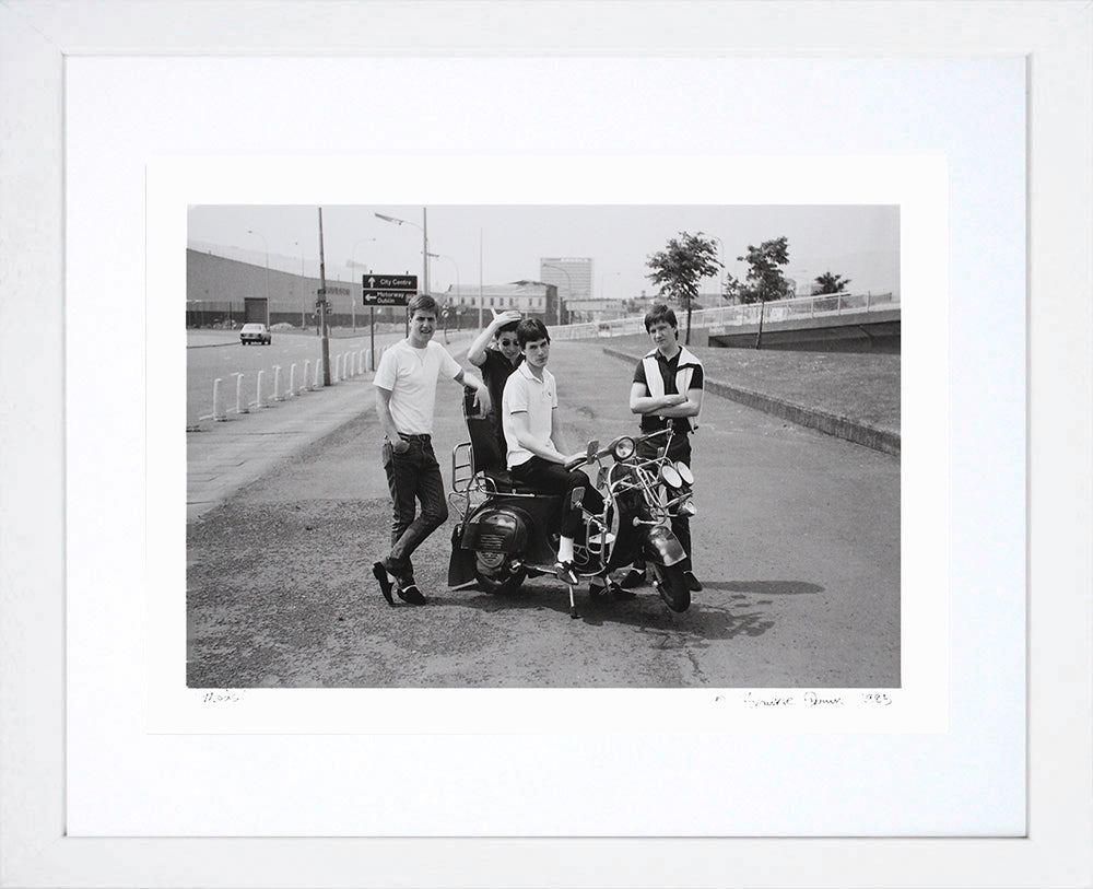 'Mods' is a signed and titled photographic print by Frankie Quinn. This iconic print defined a generation of children growing up in inner city Belfast during 'The Troubles'.