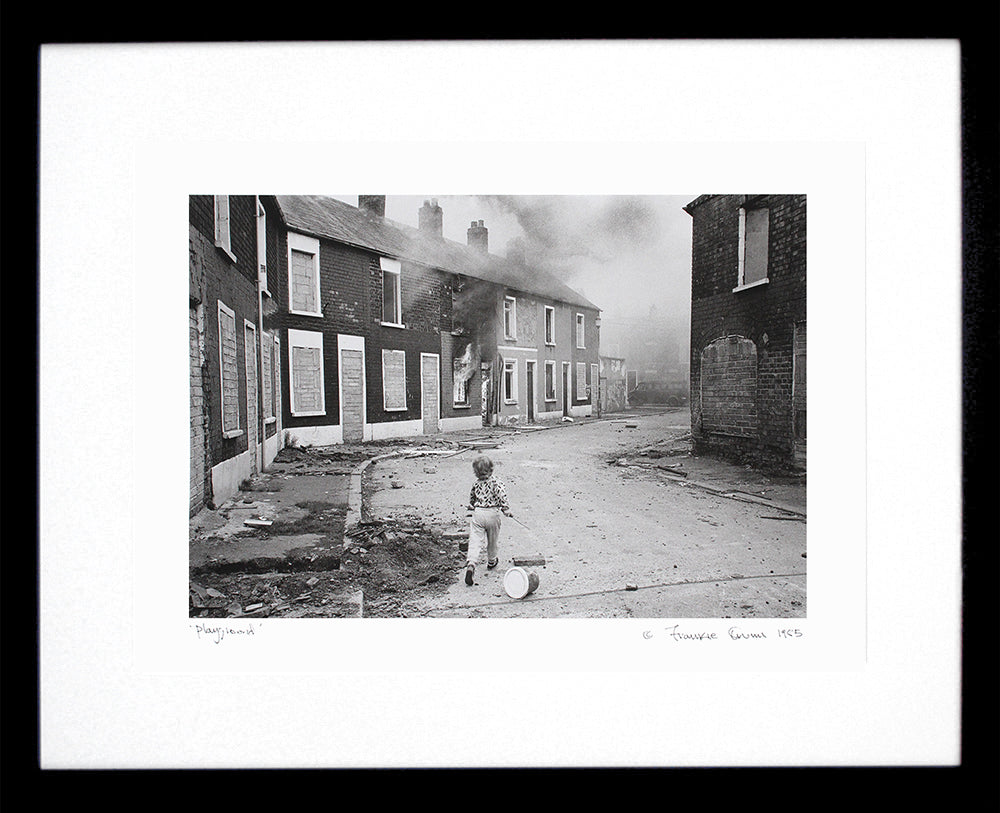 'Playground' is a signed and titled photographic print by Frankie Quinn. For some children growing up in 'The Troubles' in Belfast this was the reality of childhood.