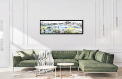 This artwork comes unframed or framed in an unglazed, black, wooden frame.