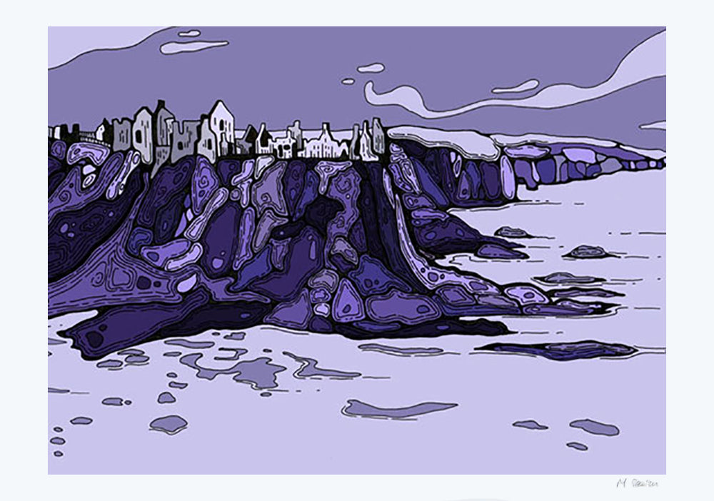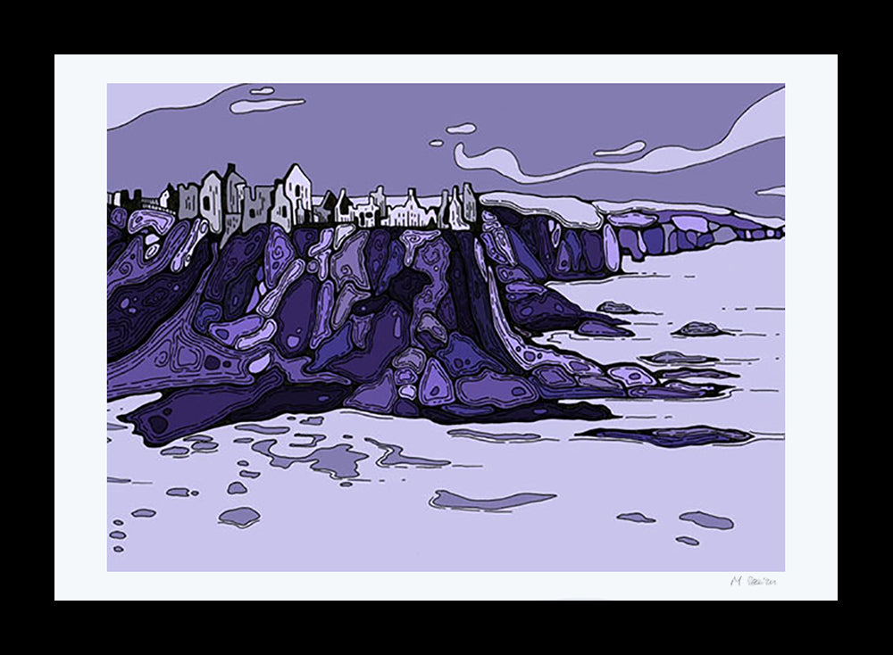 Dunluce Castle In Purple is a signed giclee print from an illustration by Mark Seaton.