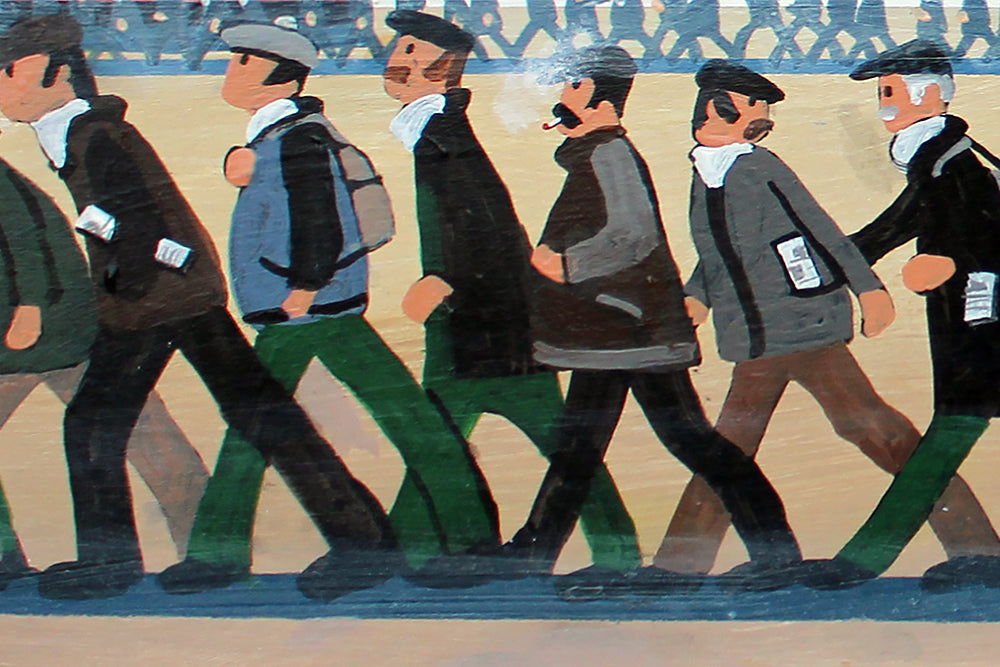 'End Of The Day Shift' is a signed, original, oil and acrylic painting by Cupar Pilson.