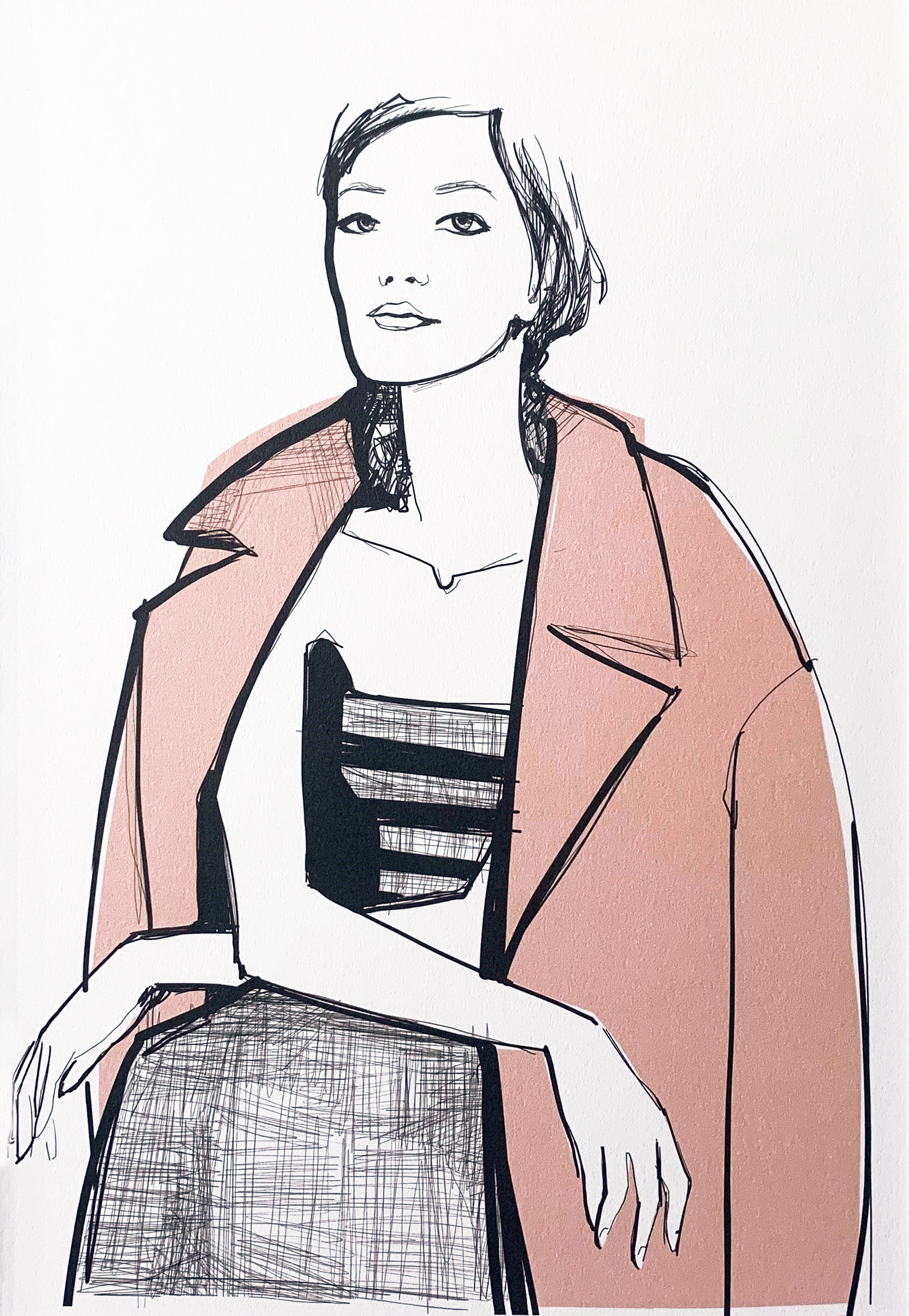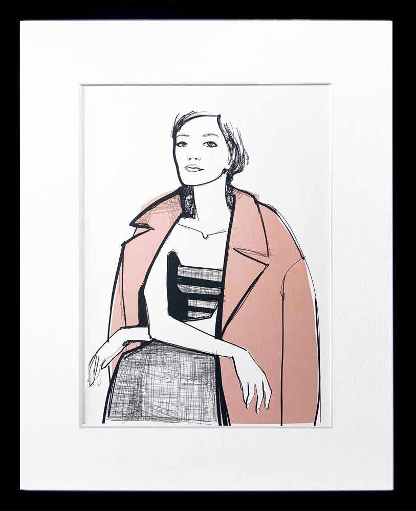 'Fashion Design No4' is a digitally signed illustrative print by Garance Doré. It is printed with archival ink on quality cover paper and comes with a mount.