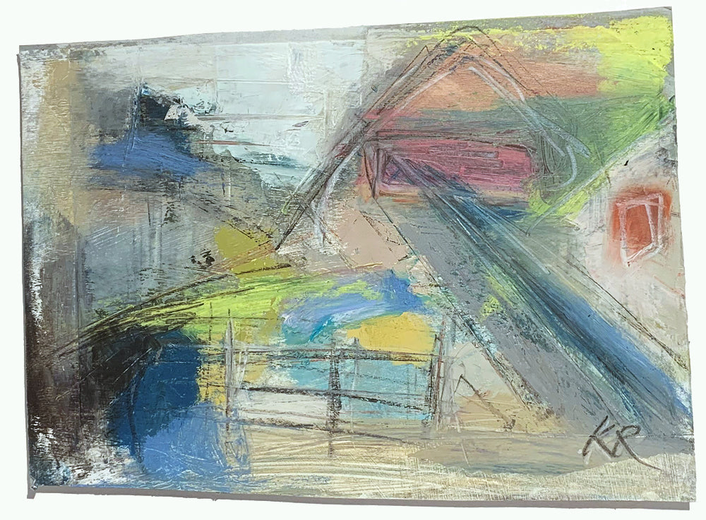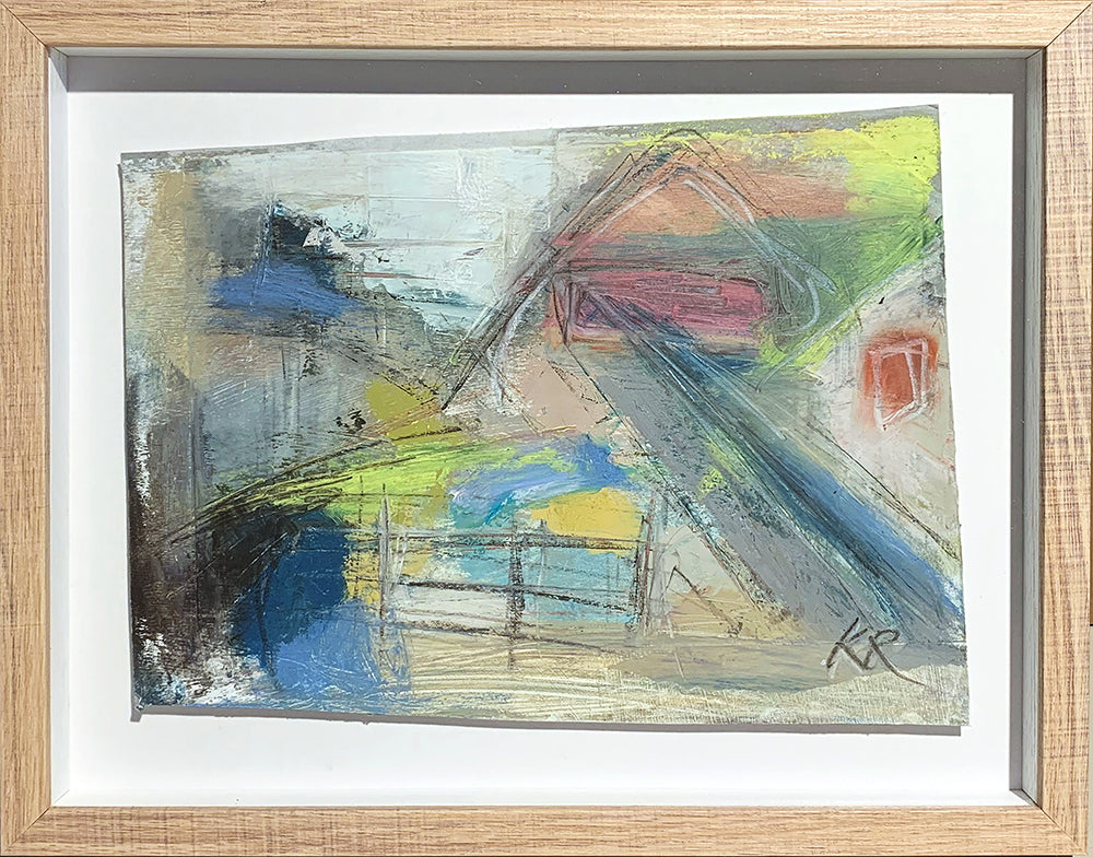 'Gates, Walls, Sheds 1' is a signed, original mixed media painting by Kate Rebbeck.