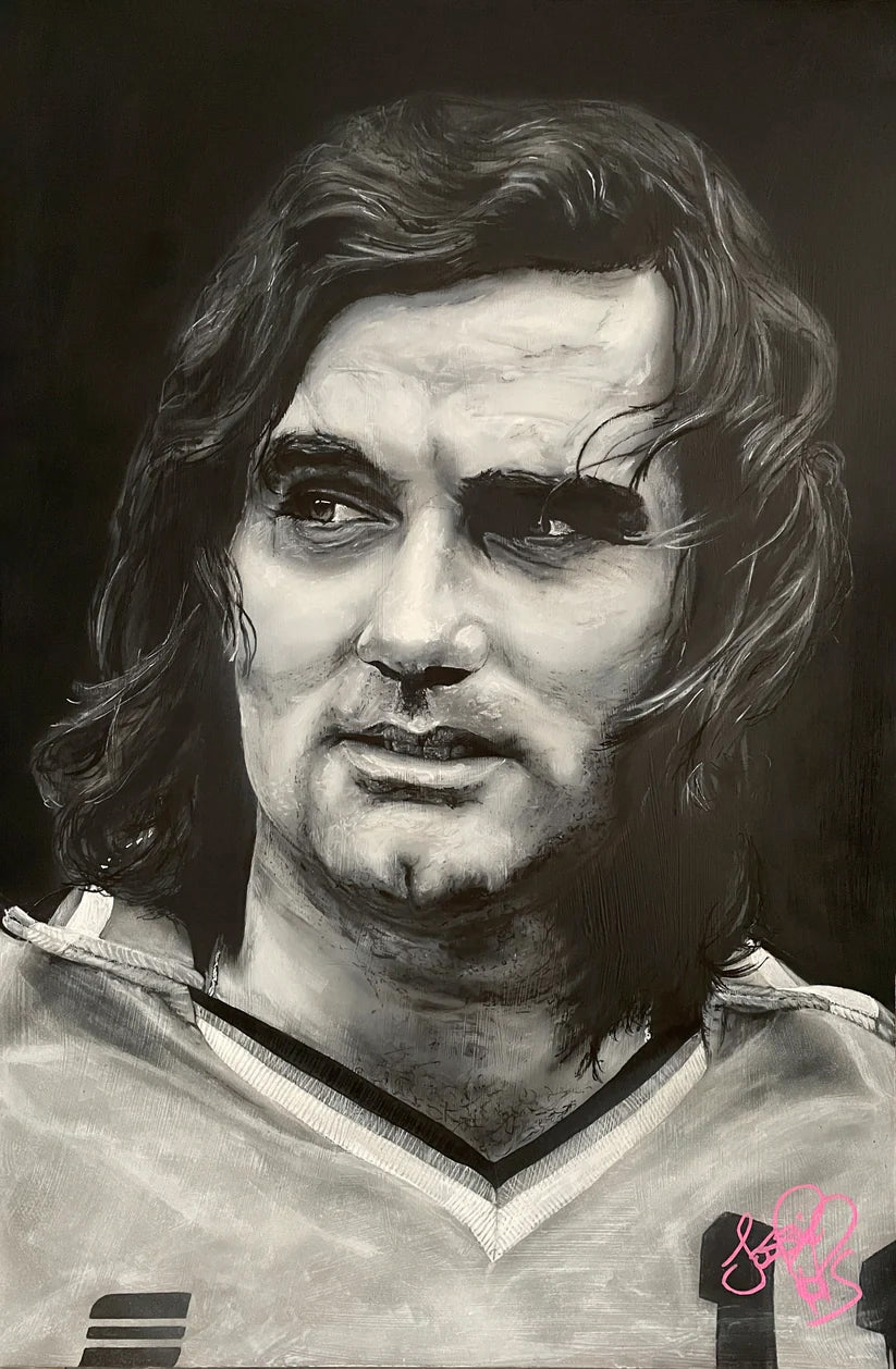 'George Best' is a signed limited edition fine art print of an original painting by Jossiepops. It is a striking image of George and is printed on fine art-grade paper to ensure the highest quality and longevity.