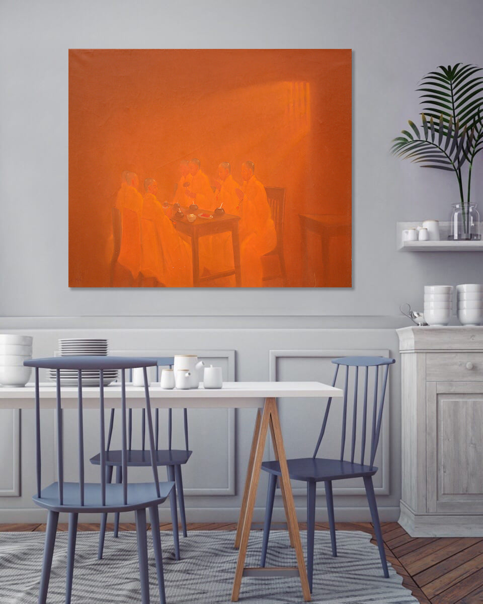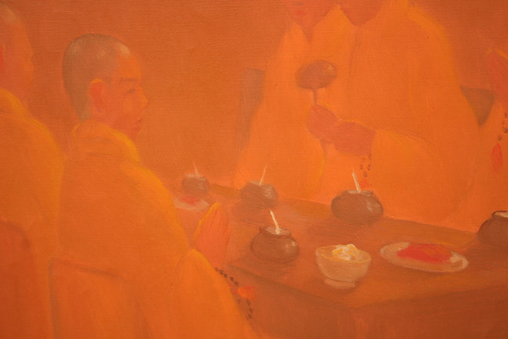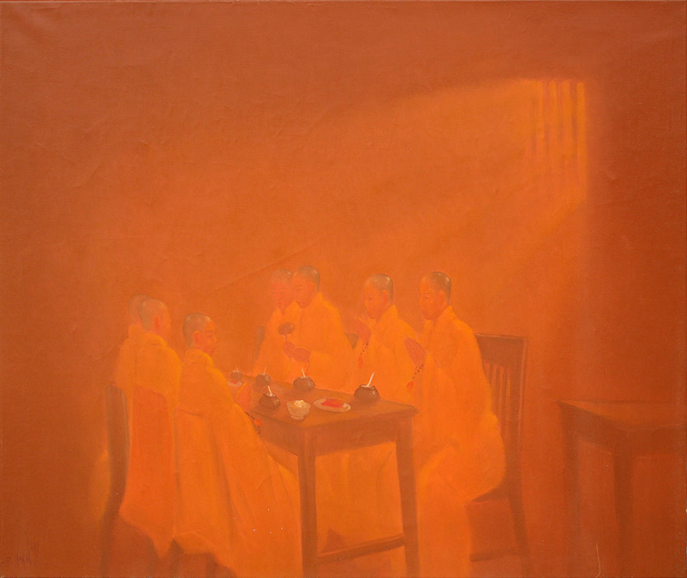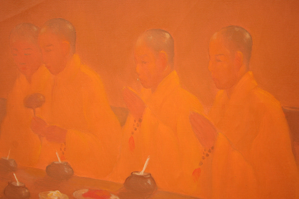 'Giving Thanks' is a signed, original, oil painting on canvas by Bui Van Hoan.