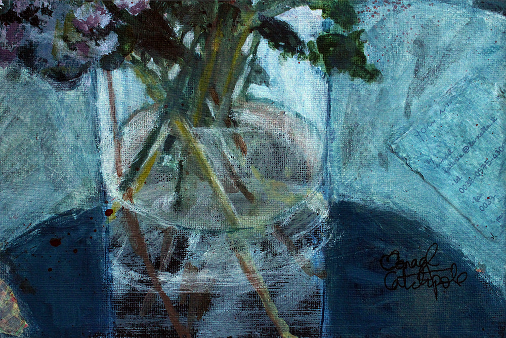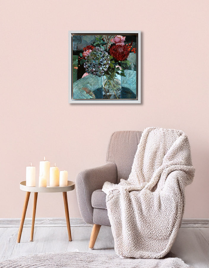 'Hydrangeas And Peonies' is a signed, original mixed media painting by Oonagh Catchpole.