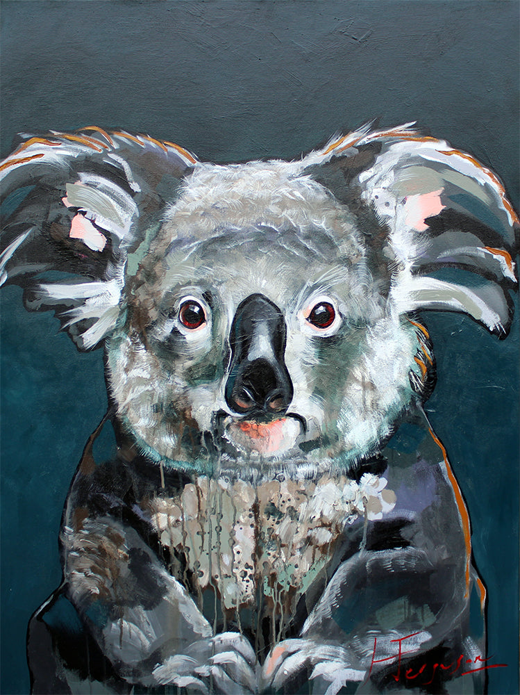 'Koala' is a signed, original, acrylic painting on canvas by Heather J Ferguson.