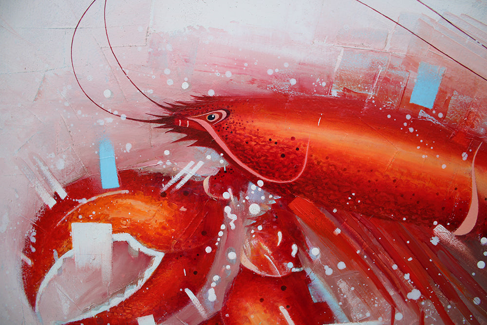 'Lobster' is a signed, original, oil painting on board by Verner Finlay.
