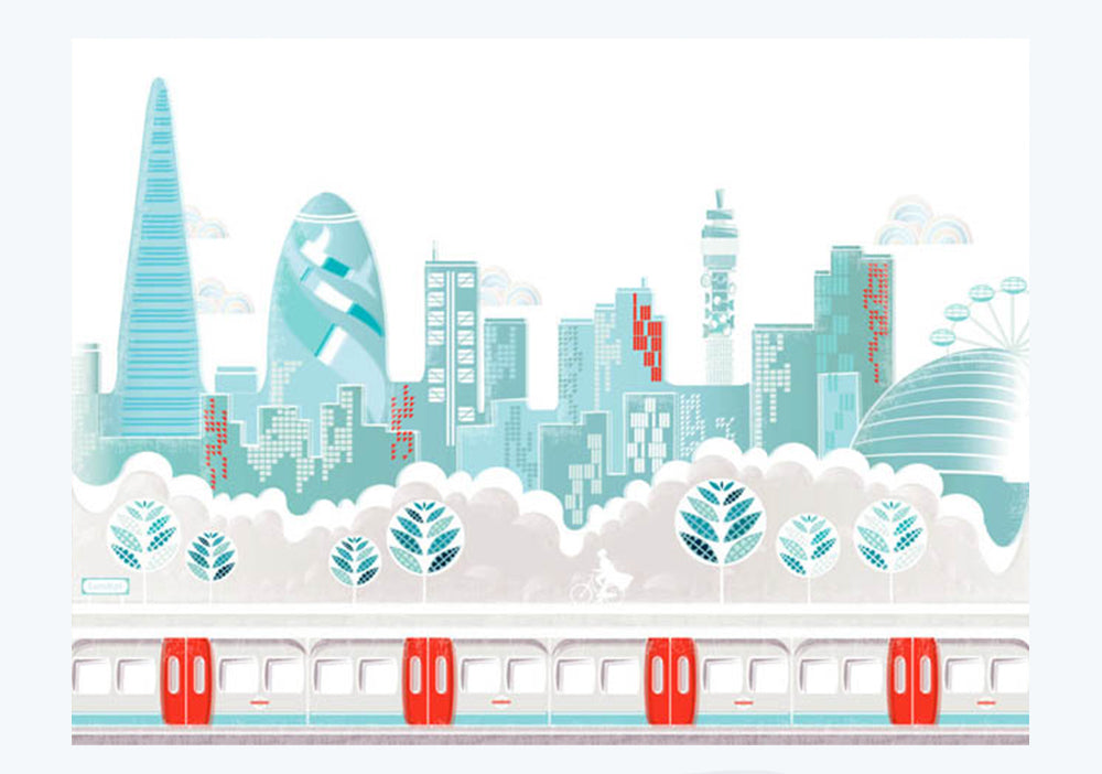 'London Landscape' is a signed, open edition illustrated print by Laura Amiss.