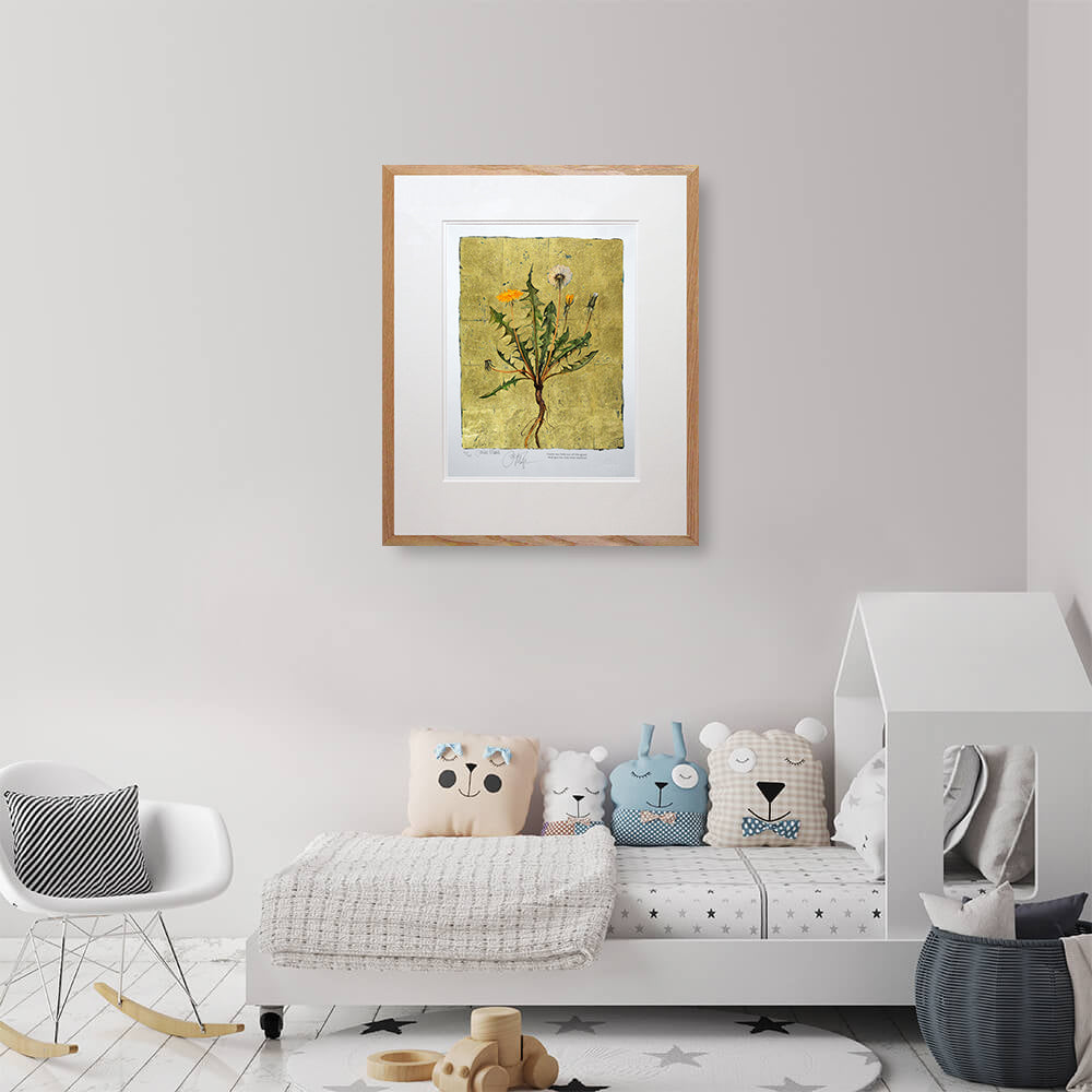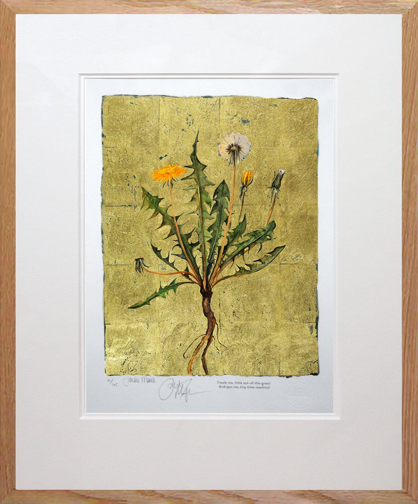 'Dandelion' is a limited edition Giclee print of 145, from the book 'The Lost Words', signed by both the author Robert Macfarlane and illustrator Jackie Morris. Printed on 300gsm Somerset velvet 100% cotton rag archival paper, the print comes with a Certificate of Authenticity and is held in a white double mount.