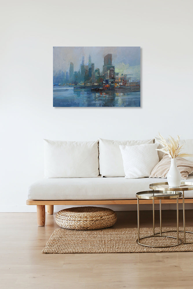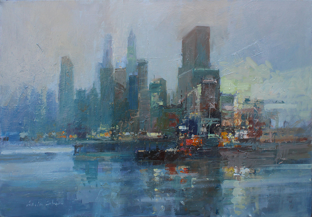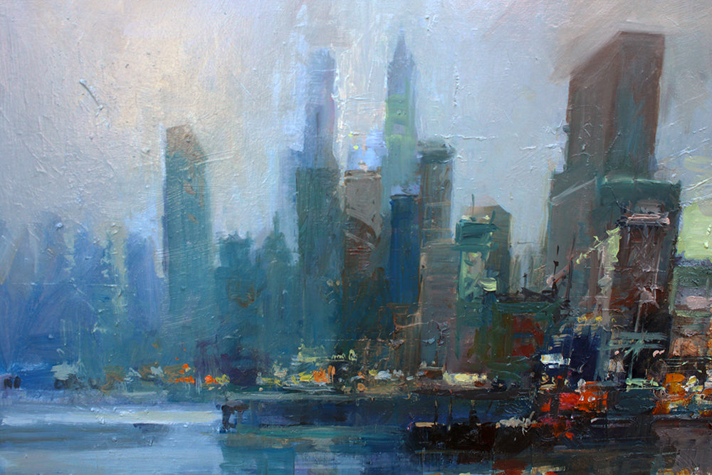 'Manhattan Bridge Brooklyn' is a signed, original, oil painting on canvas by Colin Gibson.