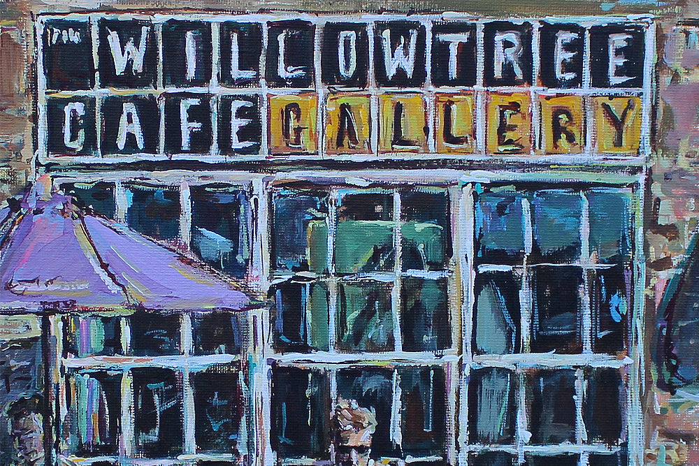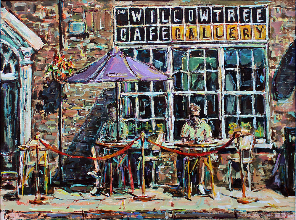 'The Willow Tree, Comber' is a signed, original, acrylic painting by Mark Geddis.