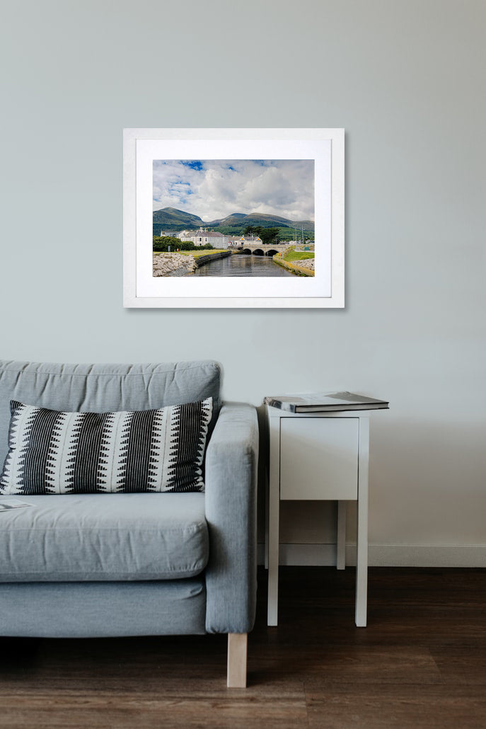 Frame Details: We use sustainable wooden frames and glass, not fibreboard and acrylic which typically you find in 'off the shelf' frames. Unlike acrylic, glass does not lose its clarity over time and can be easily and safely cleaned. We have been successfully shipping ready to hang frames containing glass since we opened in 2005. There are two finishes to choose from: black or white.