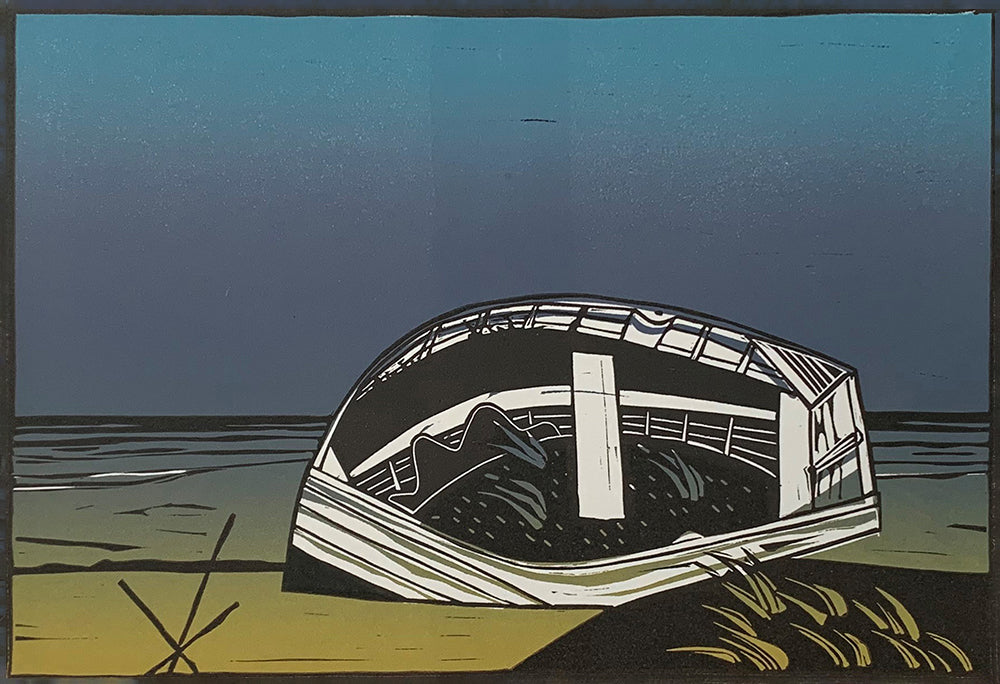 Signed Limited Edition three block linoprint by Colin Moore entitled 'No More Fishing VII'.