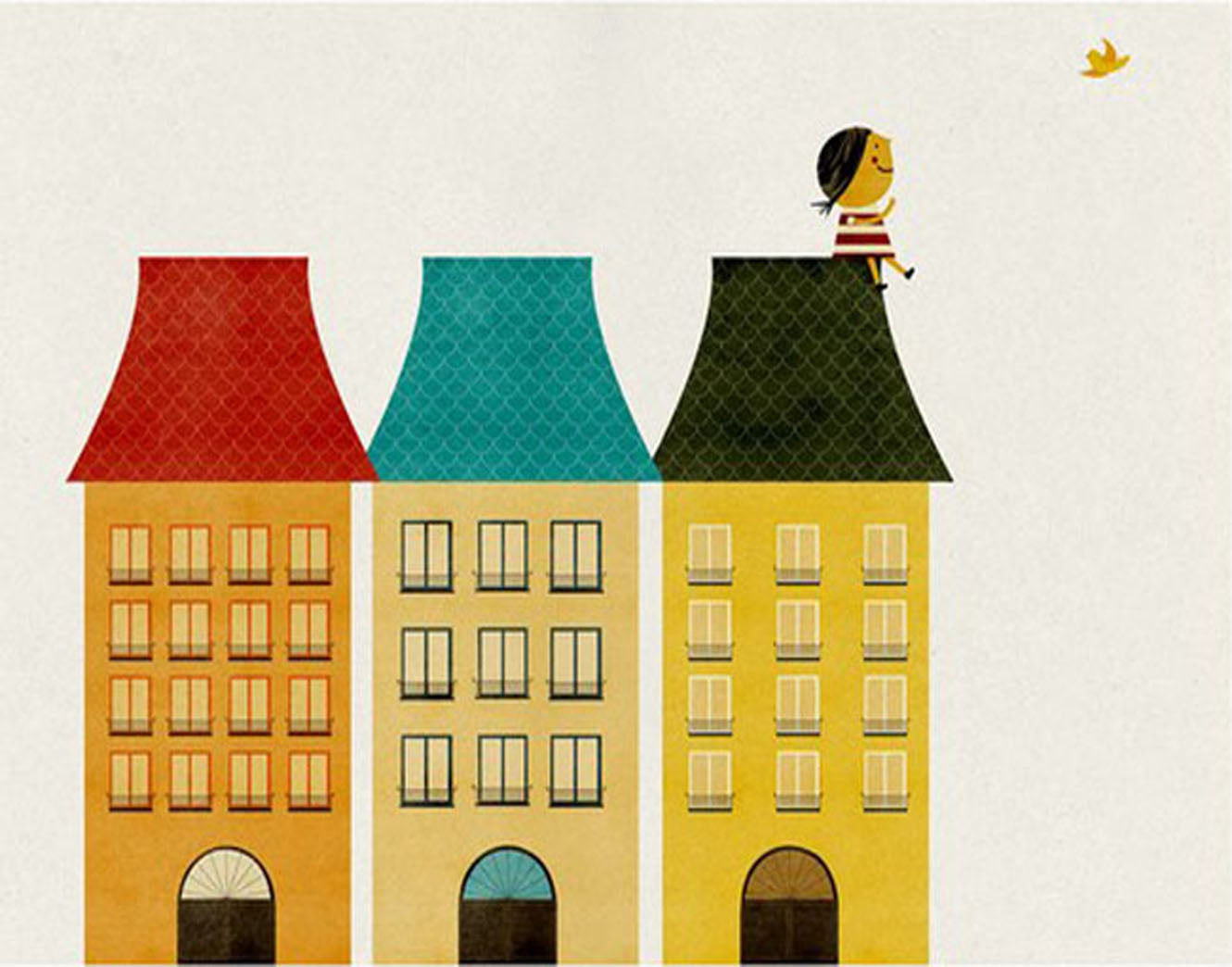 'On The Roof' is a signed, open edition illustrated print by Blanca Gomez.