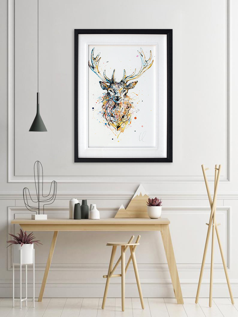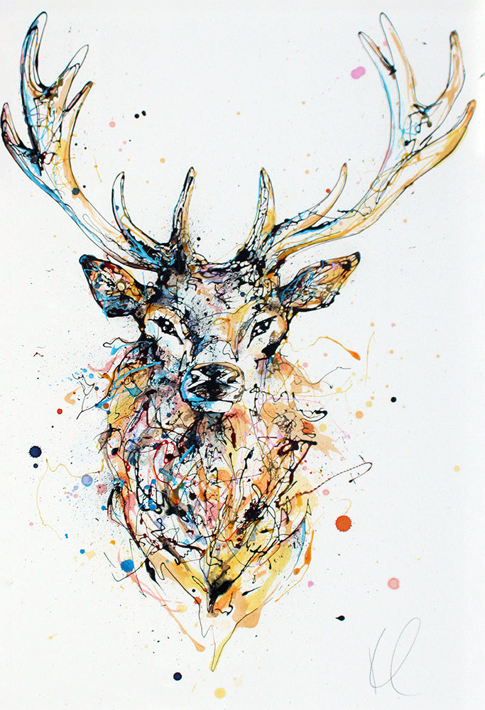 'Aura (Stag)' is a signed, original acrylic and ink painting by Kathryn Callaghan.