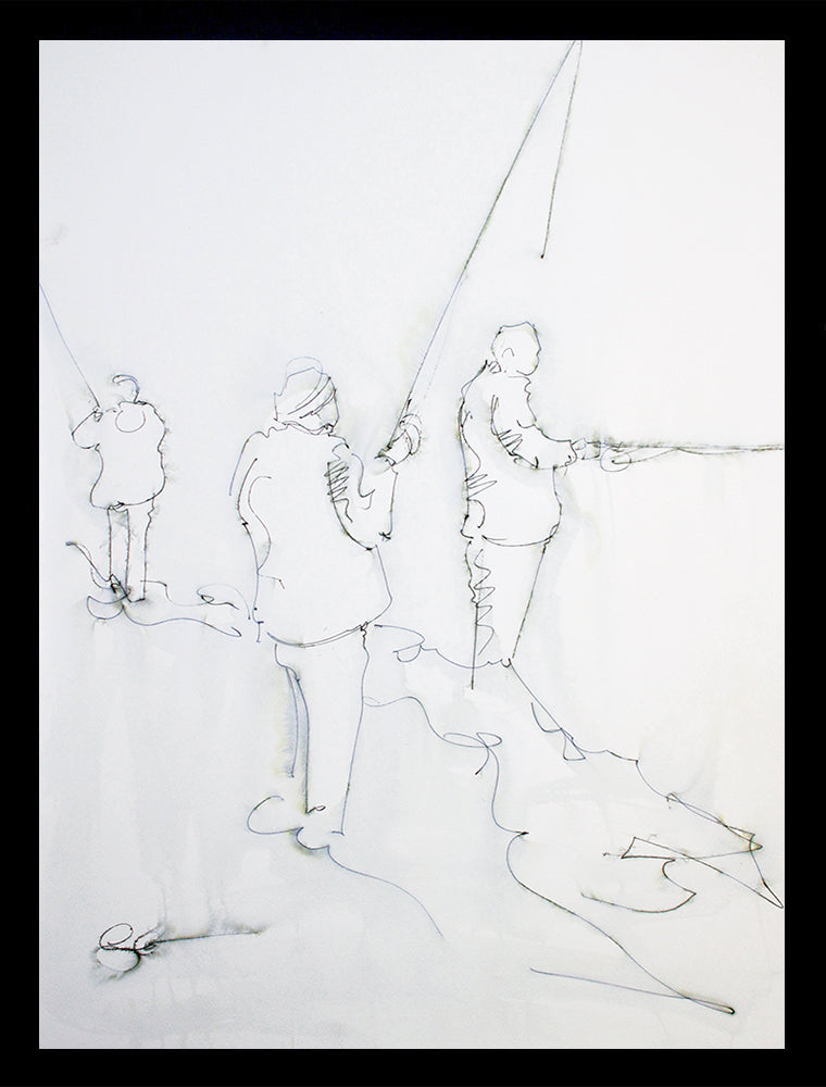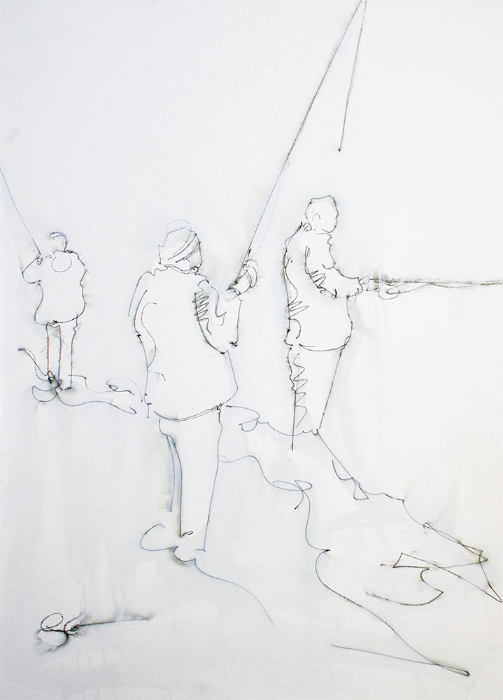 ‘Gone Fishing‘ is a signed, original mixed media painting on paper by Stephen McClean.