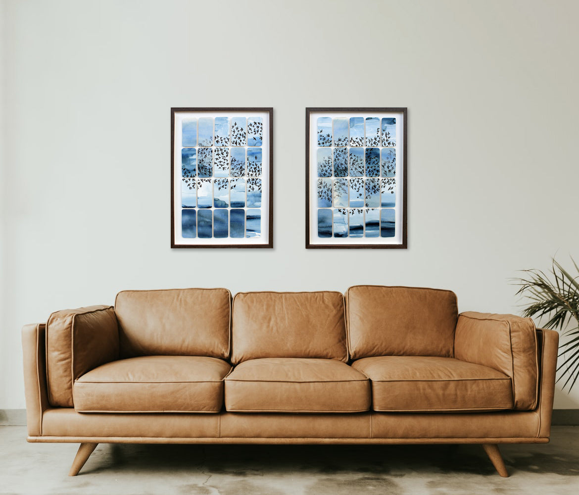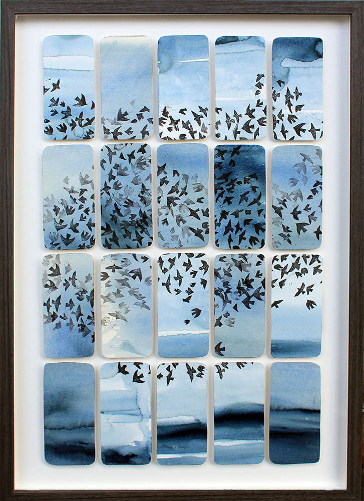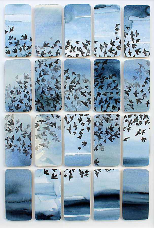 'Ten Thousand Saw I At A Glance 2' is a polyptych of twenty, watercolour and linoprint originals by Sarah Majury.