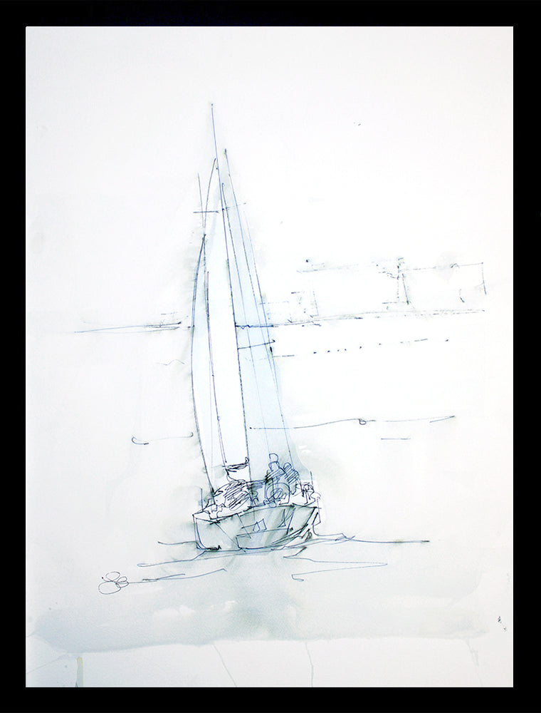 ‘Yacht Series 10‘ is a signed, original mixed media painting on paper by Stephen McClean.