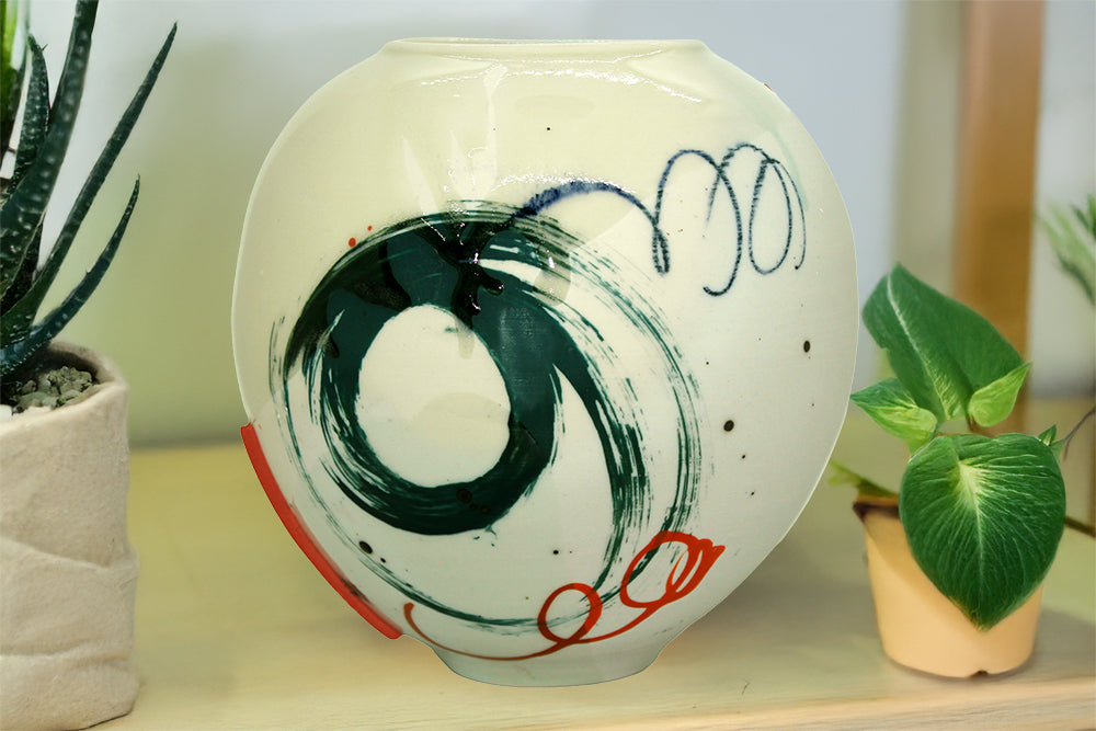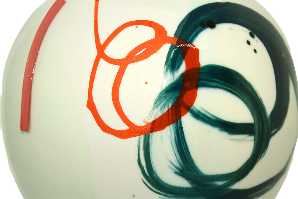 'Pot Round Small 2' is a beautifully hand crafted ceramic bowl made from porcelain with a hand painted design. Adam Frew is a ceramicist from Northern Ireland who hand makes porcelain products using his spontaneity and personal expression.
