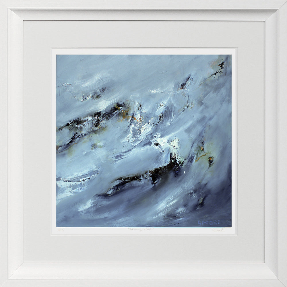 This artwork comes unframed without a mount or framed in a white, wooden chunky frame with a white double mount.