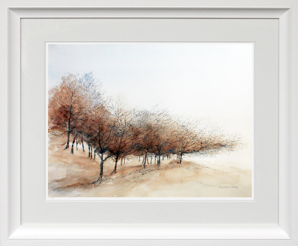 'Whispering Autumn Trees' is a signed, limited edition Giclee print by Sandra Maze.